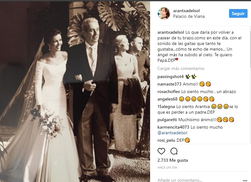 Arantxa está muy triste tras su pérdida sin embargo, su marido Finito de Córdoba estuvo en todo momento a su lado, apoyándola. La joven ha querido recordar a su padre con una bonita imagen de uno de los momentos más felices de su vida: su boda, donde caminó hacia el altar del brazo de padre.