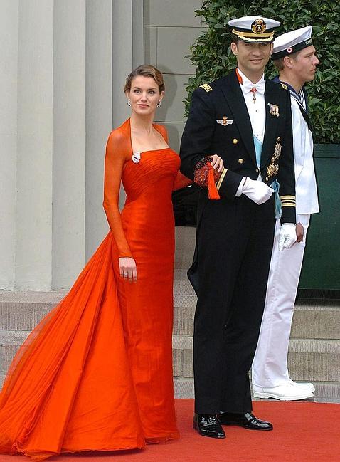 Primera boda de Letizia y su presentación ante la realeza e impactó al mundo entero. Una semana antes de su boda, Letizia acudió al enlace de Federico y Mary de Dinamarca con un espectacular vestido rojo de Lorenzo Caprile.