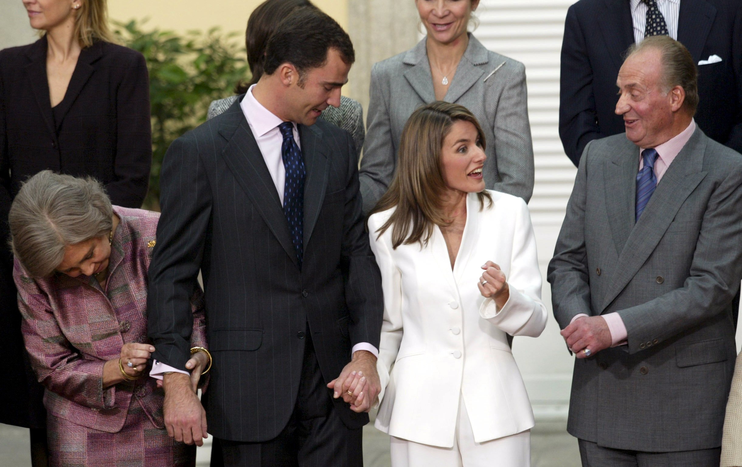 Espontánea, risueña y algo tímida pero con entusiasmo. Así se presentó Letizia ante la sociedad española en la petición de mano que tuvo lugar en el Palacio Real de El Pardo aquel año. Las críticas por su condición de plebeya y divorciada empezaron a sonar con fuerza, pero que el Príncipe de Asturias se casara por amor convenció a muchos. La modernidad había llegado a la Casa Real española.