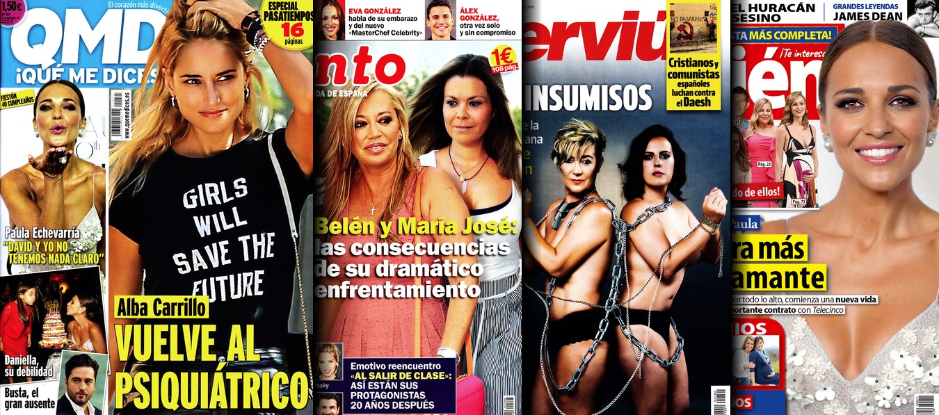 Portadas de las revistas QMD, Pronto, Interviú y Quién.