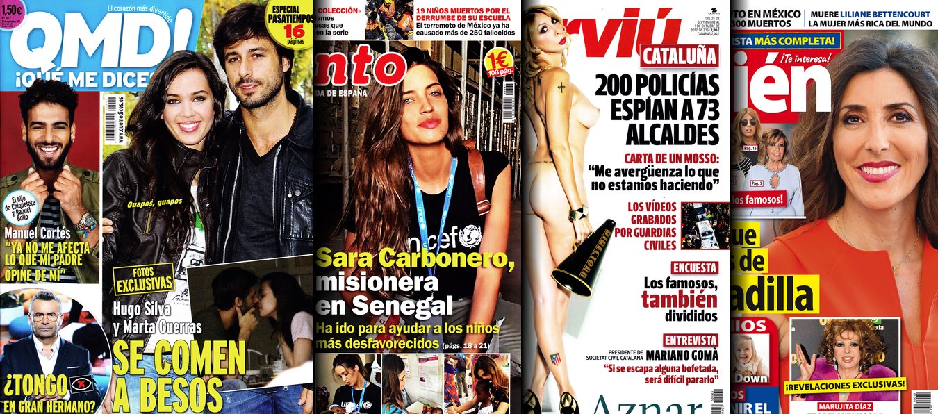 Portadas de las revistas QMD, Pronto, Interviú y Quién.