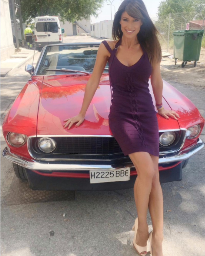 Otra de sus grandes aficiones son los coches. Sonia posa encantada con este Mustang rojo.