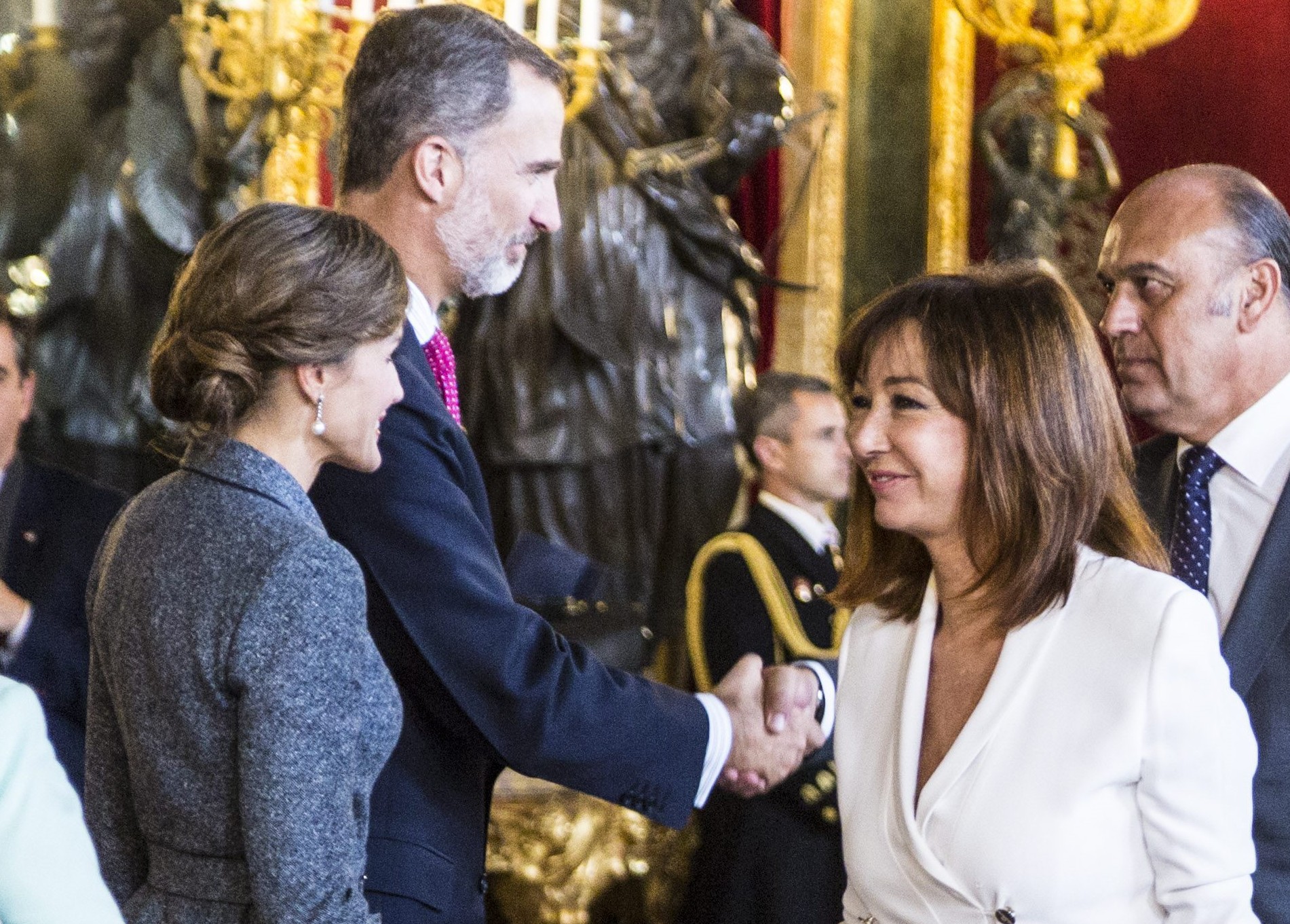 La periodista Ana Rosa Quintana, una de las invitadas destacadas en la recepción. Delante de ellas, la periodista Paloma Barrientos, colaboradora de esRadio, y detrás, Paco Rosell, director de El Mundo.