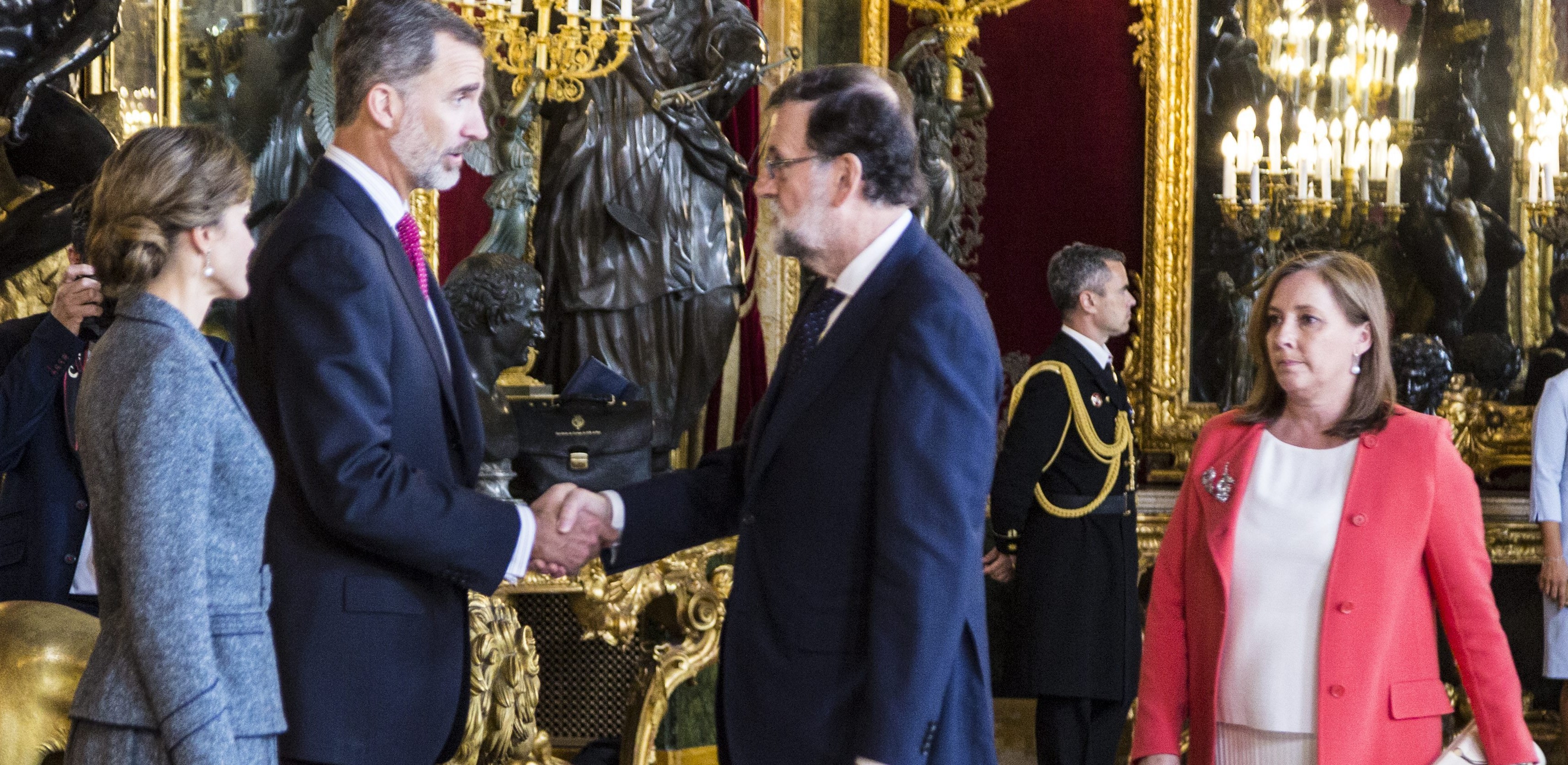 El presidente Mariano Rajoy con su esposa Viri, detrás de él.