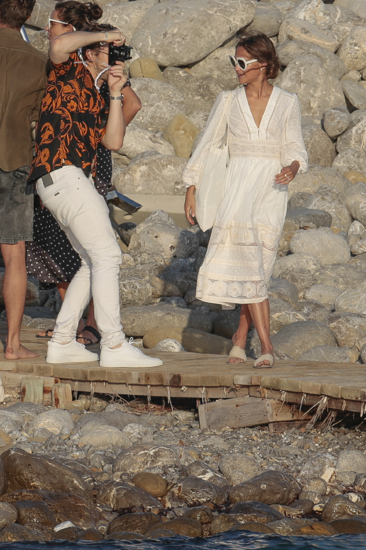 El "secreto" era a voces, ya que desde hace semanas se rumoreaba que los actores de Hollywood se darían el "sí quiero" en una ceremonia íntima con las playas ibicencas de fondo. Al enlace acudieron familiares y amigos íntimos de los novios, entre ellos, el modelo español de fama internacional Jon Kortajarena. Los paparazzi captaron imágenes de las celebraciones prenupciales en las que se puede ver a la pareja besándose en un restaurante a pie de playa y bañándose en el mar junto a su entorno.