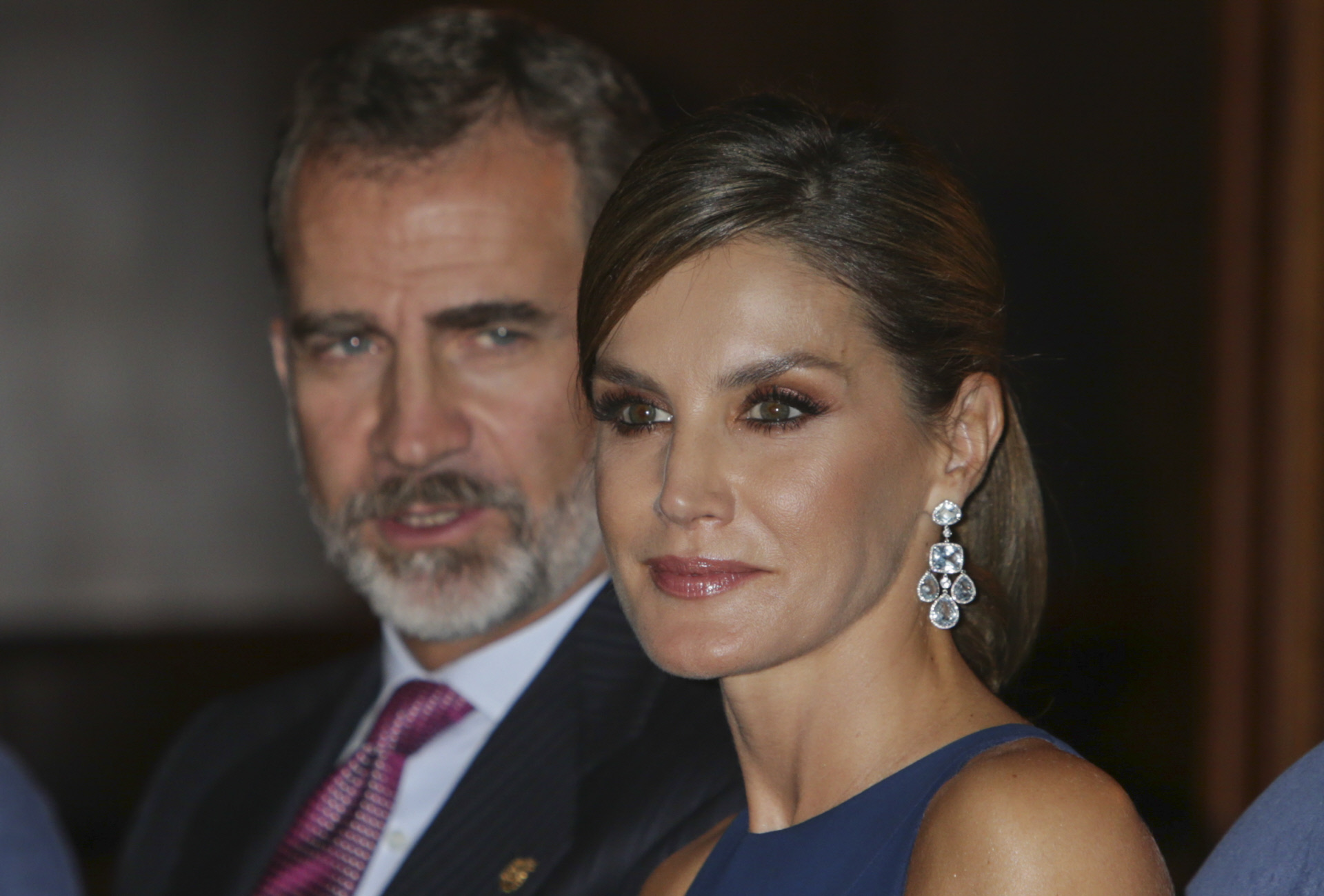La Reina Letizia deslumbró con un espectacular vestido azul de Felipe Varela, combinado con unos stilettos del mismo color, de Nina Ricci.
