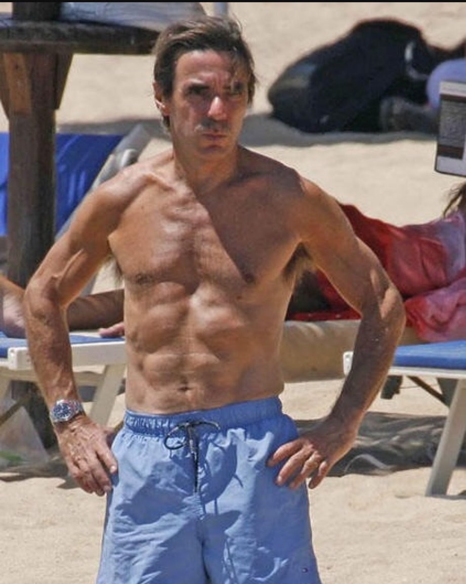 El verano del año 2010 estuvo protagonizado por esta imagen del expresidente, José María Aznar, luciendo bíceps y abdominales en la playa.