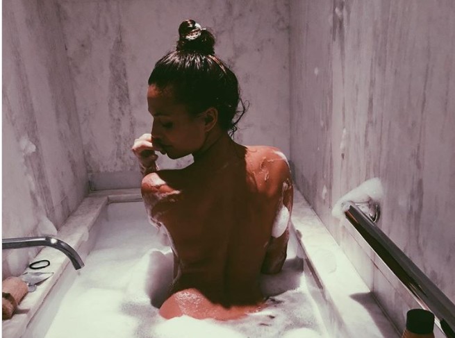La madrileña, que ahora mismo aparece en Servir y proteger en TVE, se fotografió así en la bañera desde Nueva York.