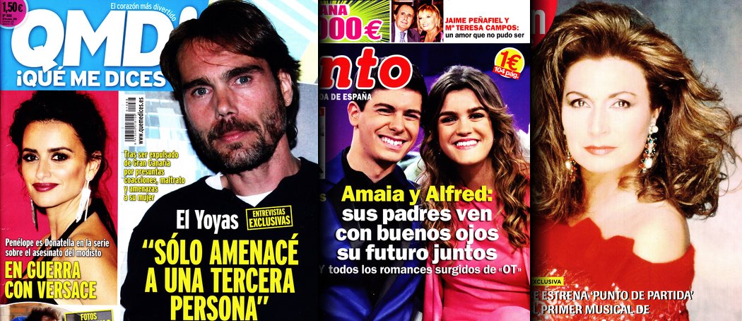 Portadas de las revistas QMD, Pronto y Corazón TVE.