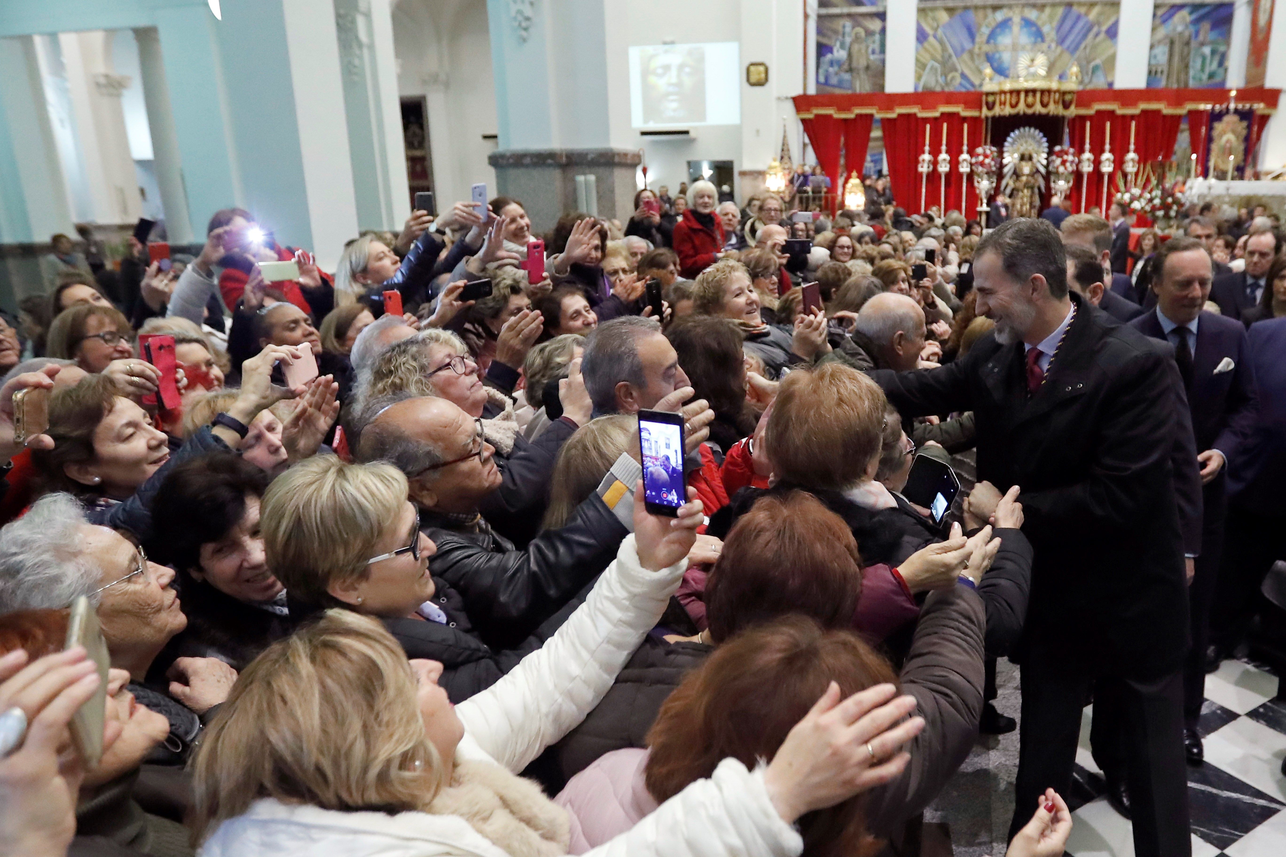 El rey Felipe VI se ha dado un baño de masas en la Basílica del Cristo de Medinaceli en Madrid.