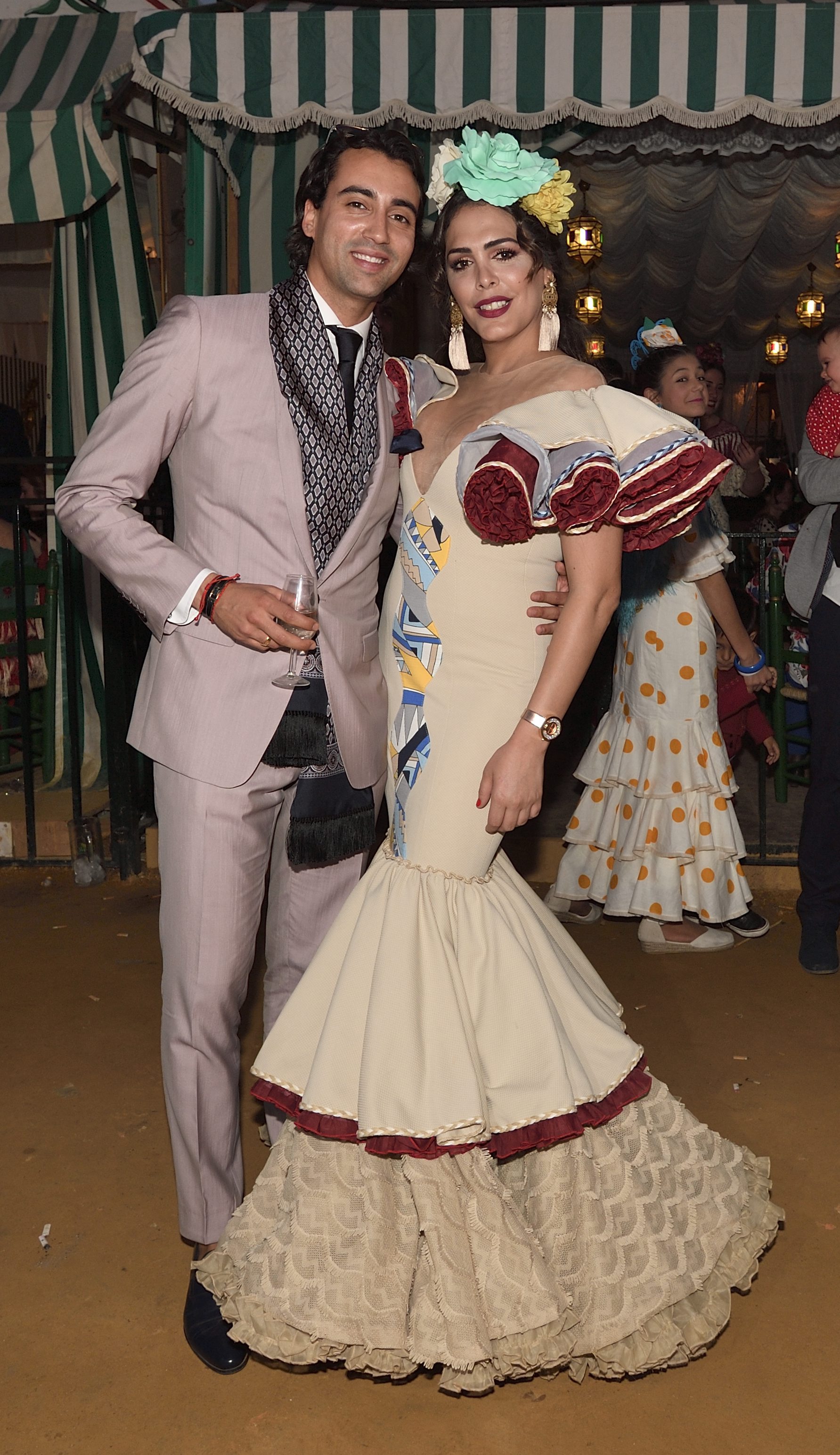 Vestida de flamenca como su madre, Tana Rivera fue otra de las destacadas miembros del clan presentes en la fiesta. En la caseta del empresario Rosauro Varo -marido de Amaia Salamanca- la familia disfrutó de los aperitivos típicos de la Feria.