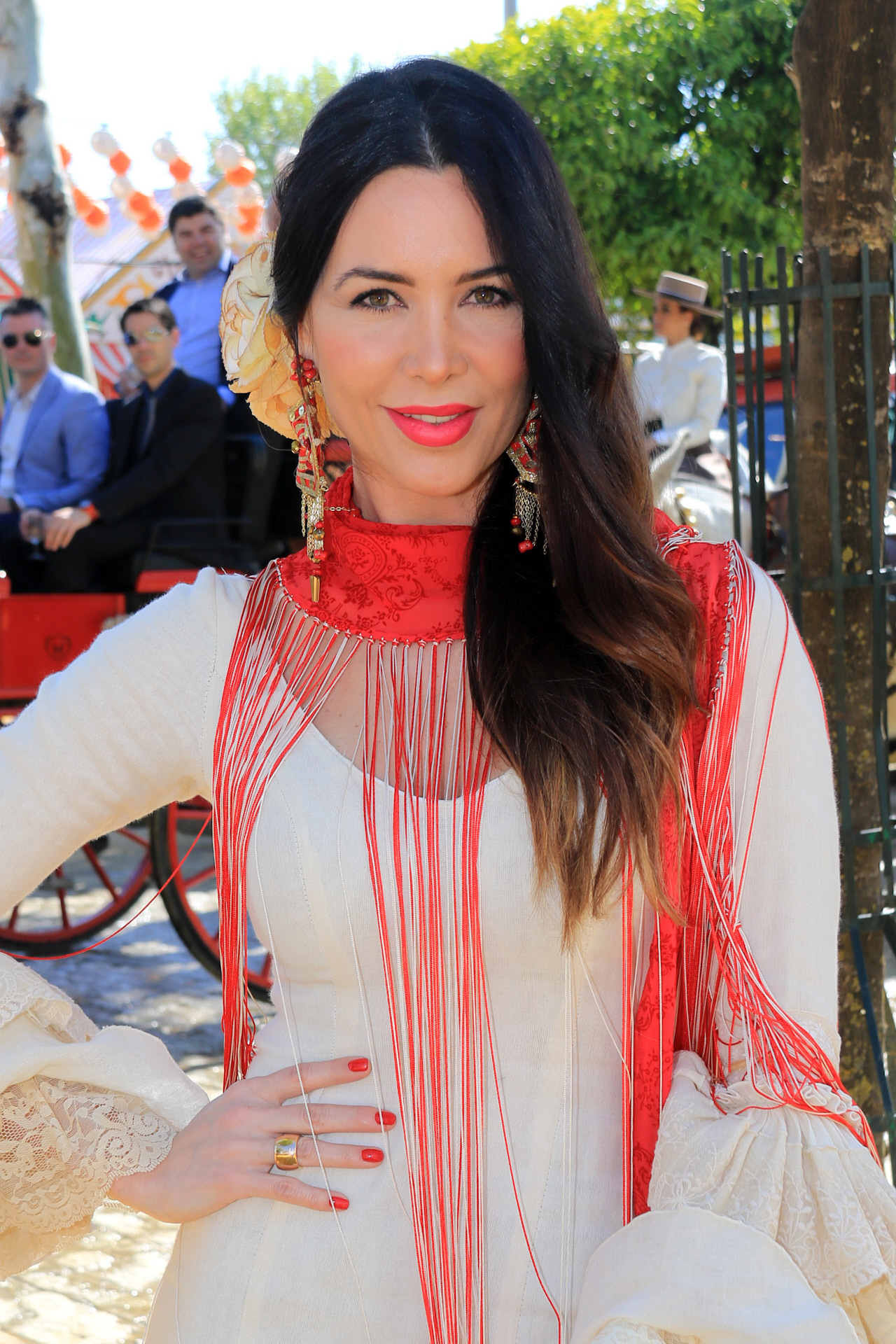 La modelo y ex miss España Vania Millán paseando por el ferial de Sevilla.