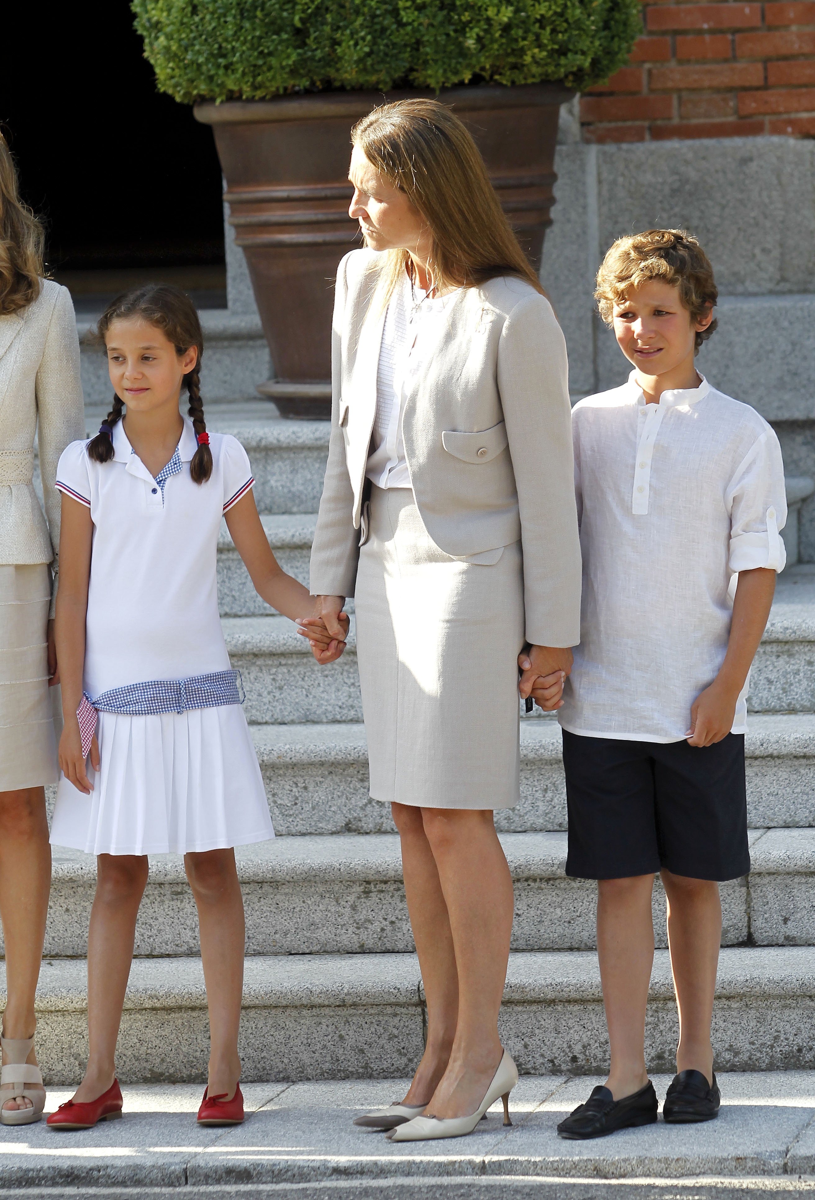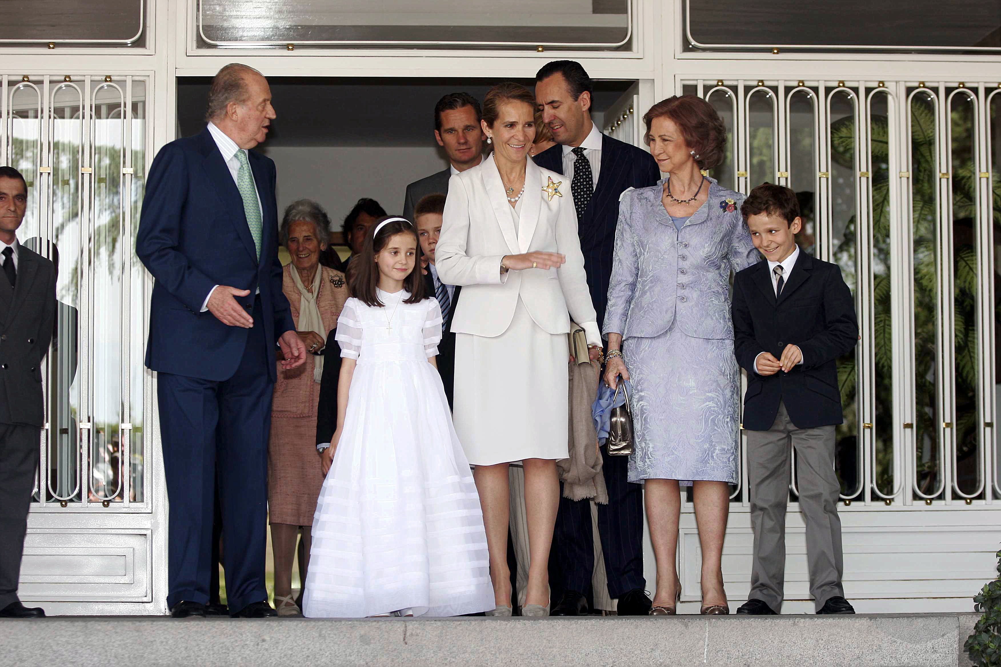 El día de su Primera Comunión con sus abuelos don Juan Carlos y doña Sofía, sus padres, su hermano y su tío Iñaki Urdangarin. Una imagen imposible de repetir.