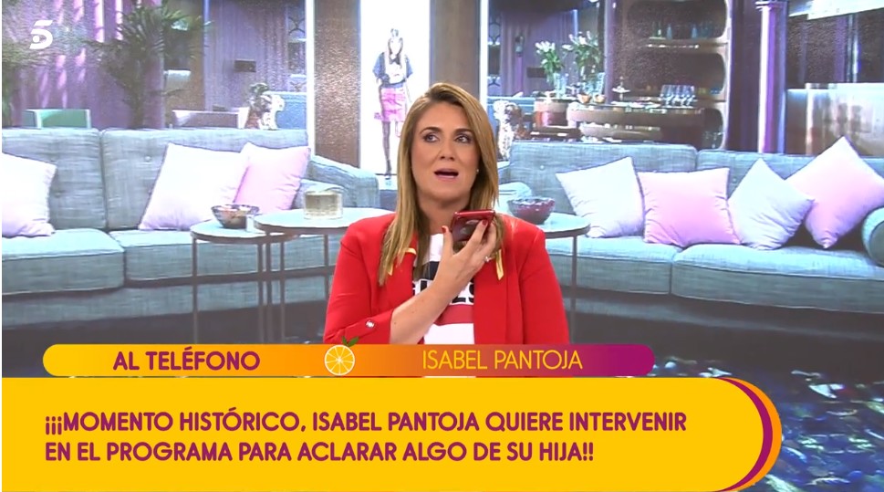 Otros colaboradores, en virtud del acuerdo de Pantoja con el realizador del espacio, apenas pudieron responder a Pantoja durante la famosa llamada. La cantante solo podía, por tanto, hablar con Carlota Corredera, al principio visiblemente nerviosa.