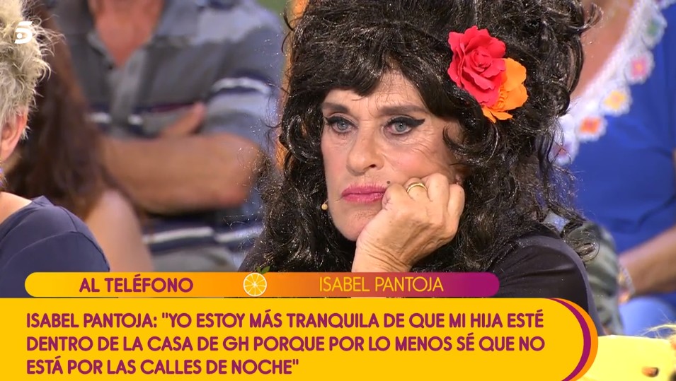 No obstante, con Terelu Campos, Pantoja tuvo uno de los intercambios más incómodos. Ya al borde de las lágrimas, la tonadillera le espetó a la hija de María Teresa Campos que no "escupiese hacia arriba o le caería encima". Se refería Pantoja a la faceta de madre herida de Terelu, cuya hija Alejandra acaba de cumplir 18 y ya se ha marchado también del hogar familiar con su novio. Terelu, que osó dudar de quién cuidaba al hijo de Chabelita en esas condiciones, con ella dentro de Gran Hermano, solo podía asentir, con lágrimas en los ojos, reconociendo esa faceta de dolor de madre. "Mi nieto está con su padre, con quien debe de estar, y luego con su abuela porque aquí está para lo que sea", respondió Pantoja, llorando también.