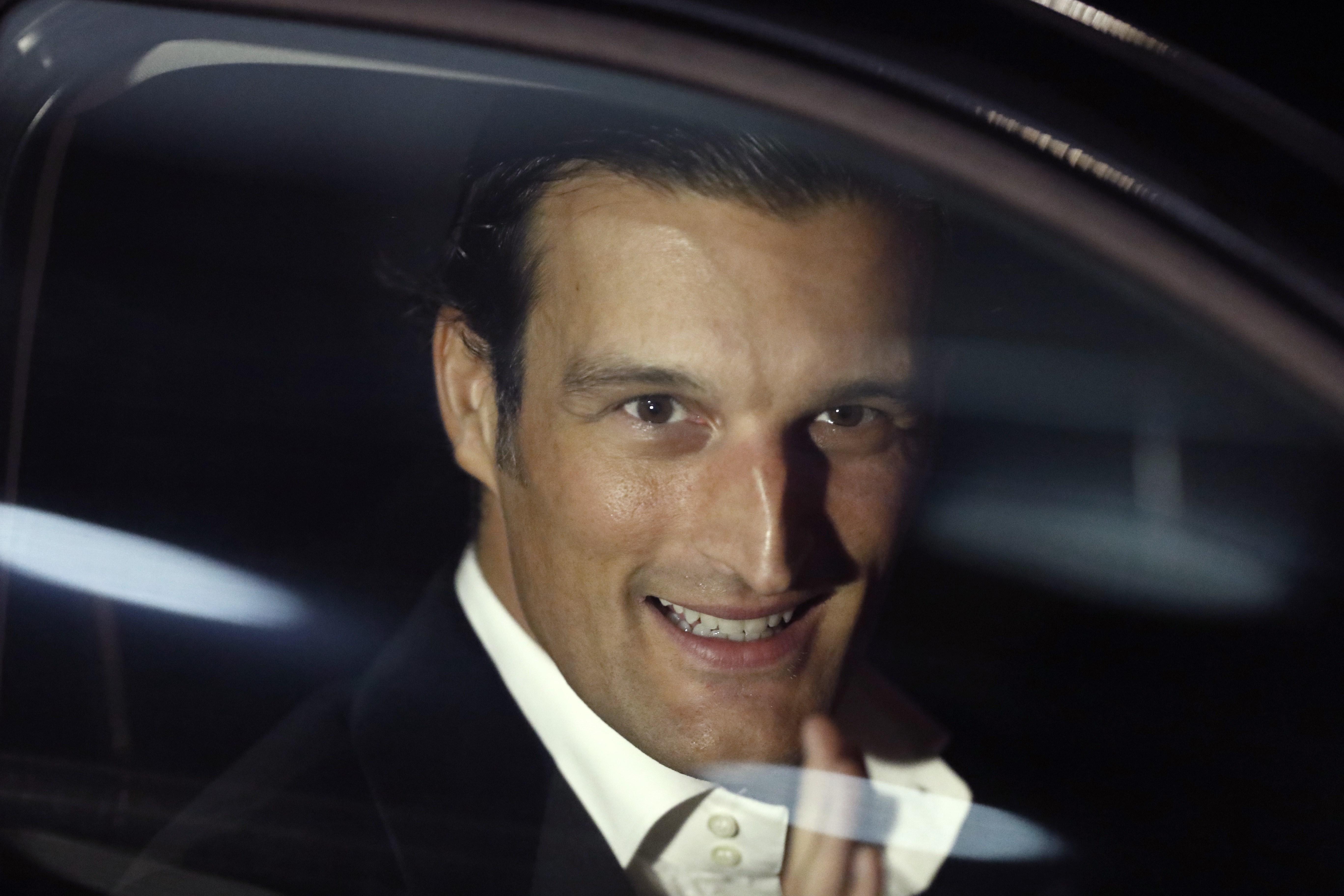 A su llegada al Real Club Náutico de A Coruña, donde se celebra el cóctel de su boda .