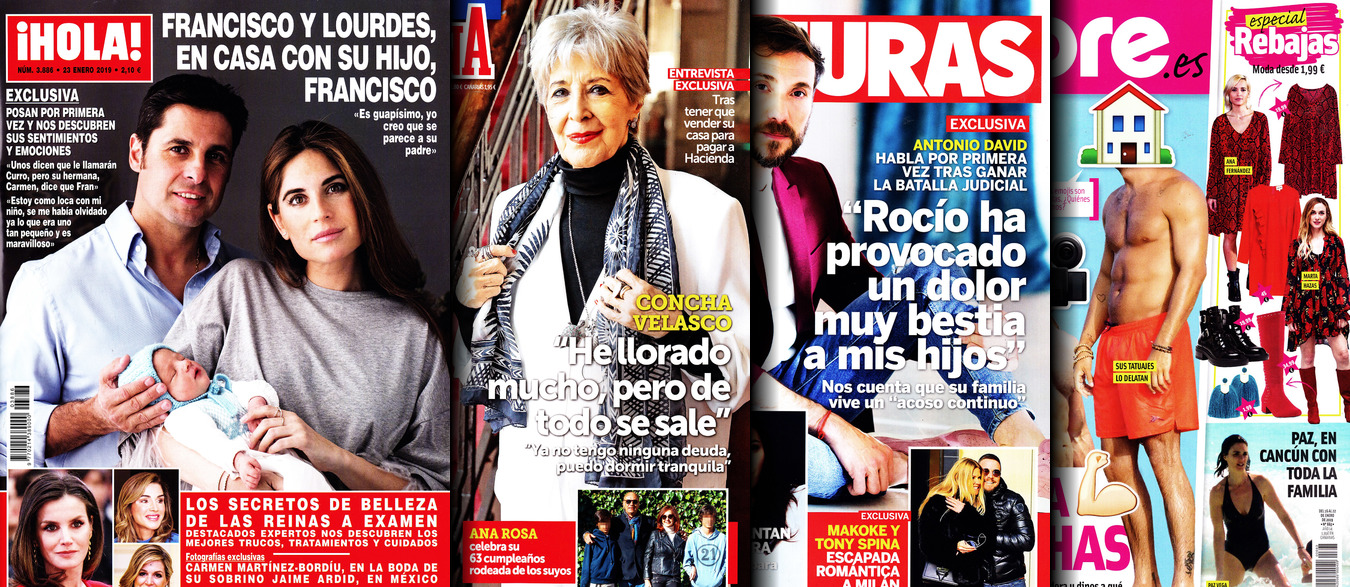 Portadas de las revistas Hola, Semana, Lecturas y Cuore.
