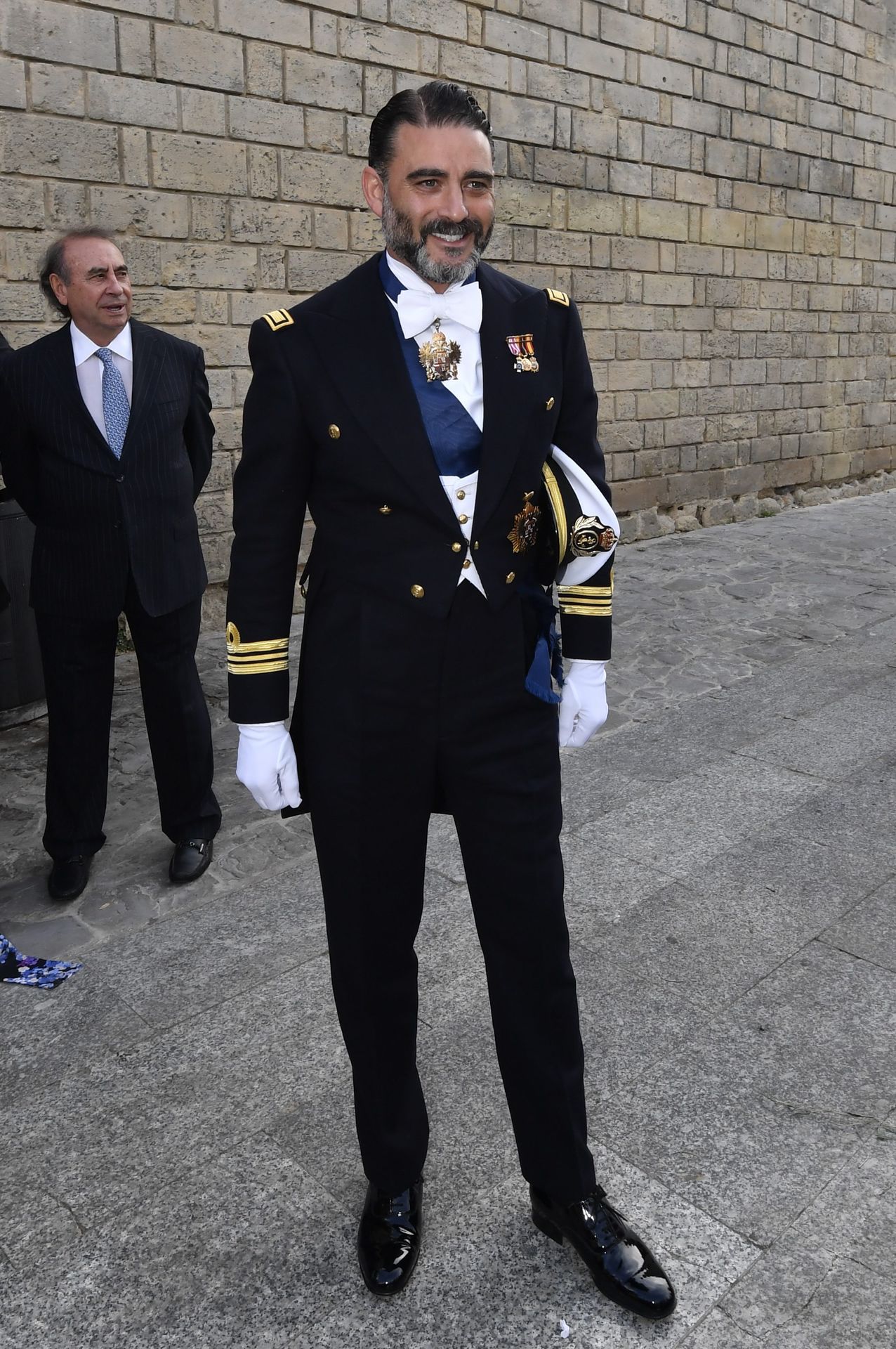 El novio Matías Urrea, capitán de corbeta, muy elegante con el tradicional uniforme de oficial de la Armada.