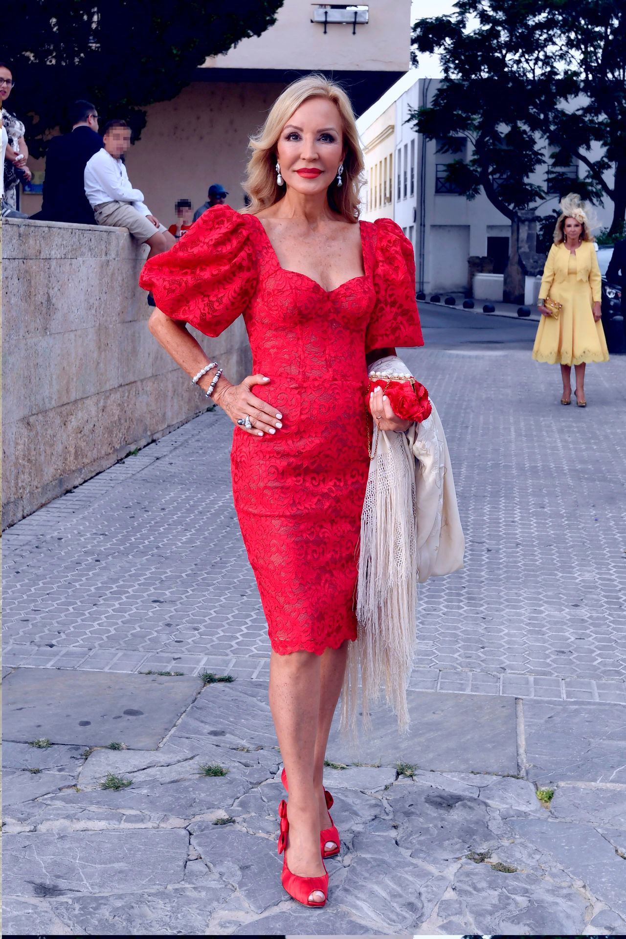 Carmen Lomana, impecable como siempre, vestida de rojo de la cabeza a los pies.