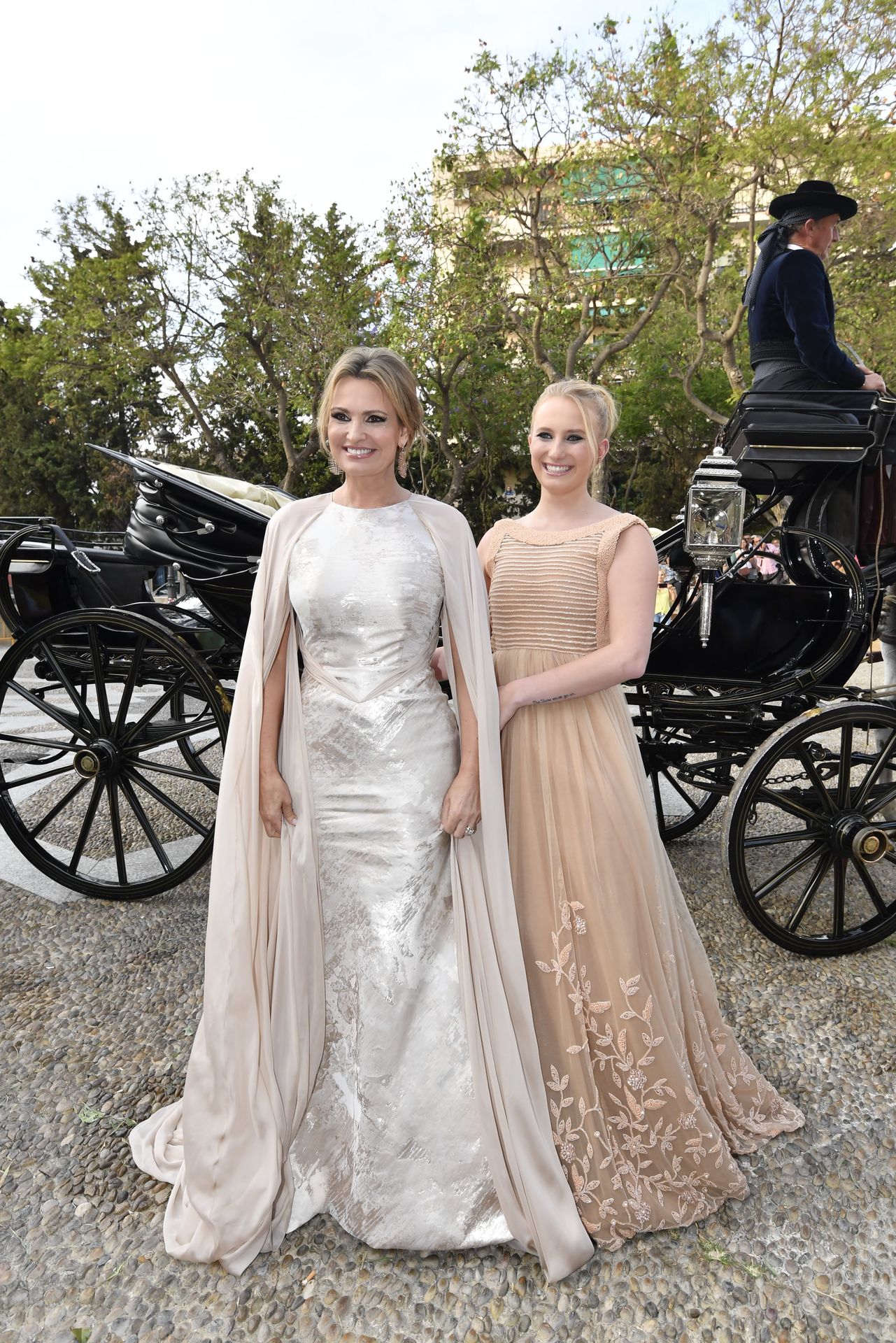La novia, con su hija Sara Croft, eligió un vestido en color nude.