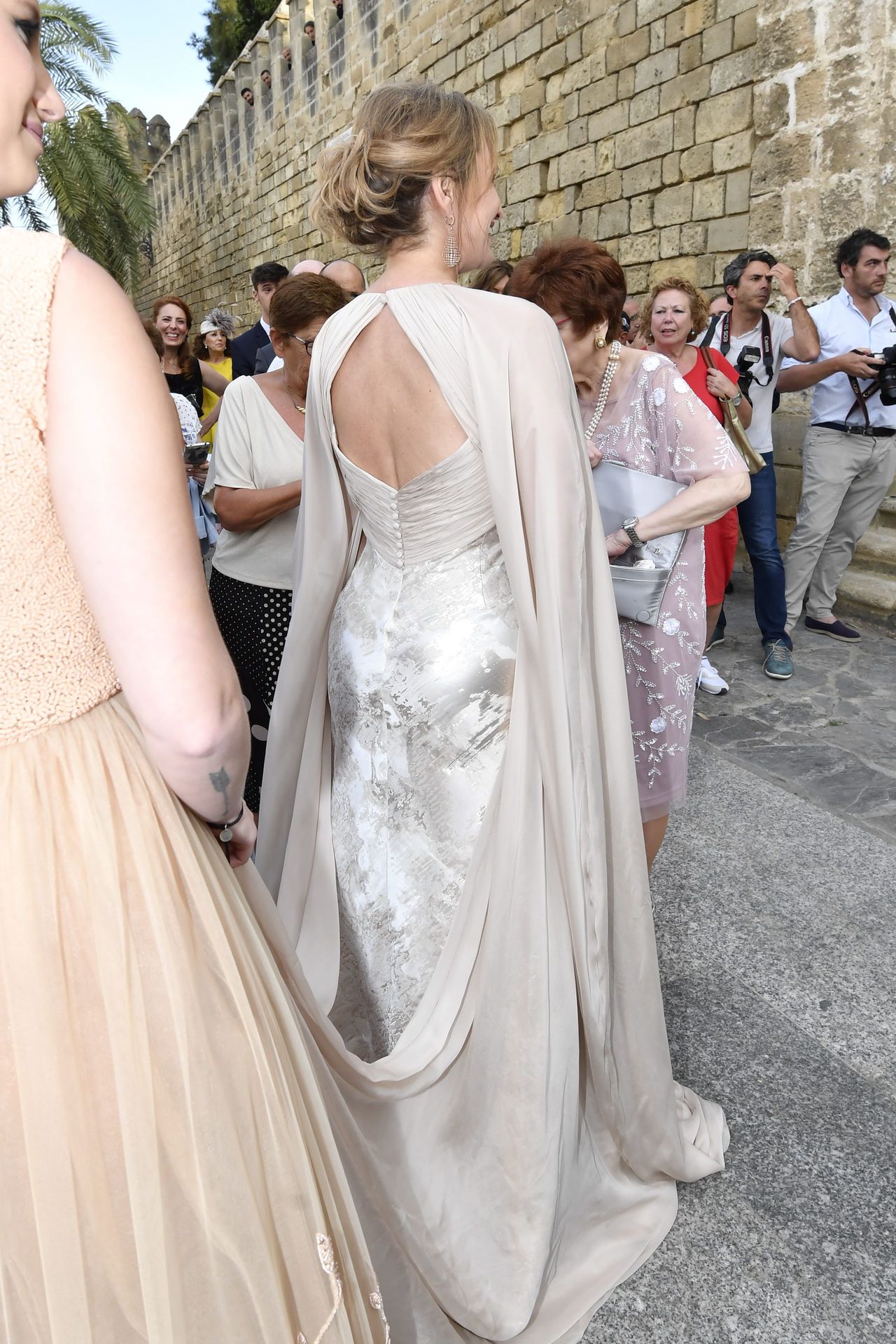 Detalle del escote de la espalda y recogido del cabello. La novia lució la sortija con la que Matías le pidió matrimonio en la Plaza Roja de Moscú.