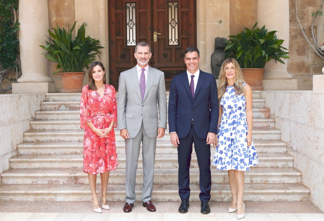 Begoña comenzó su agenda como "primera dama" y la exposición mediática a la que se quiere someter poco antes de que el IE anunciara su fichaje. En agosto de 2018 acompañó a su marido a Mallorca para el almuerzo posterior al despacho del Rey con Pedro Sánchez en Marivent. Fue el primer duelo de estilo entre la Reina y la mujer del Presidente y resultó que ambas escogieron vestidos con diseños florales. El de Letizia, vaporoso, con lazo anudado a la cintura, manga tres cuartos y en tonos corales, firmado por Adolfo Domínguez, mientras que Begoña escogió uno más sencillo, en blanco, con flores azules y sin mangas, de Carolina Herrera. La elección del zapato también es muy parecida, ya que ambas eligieron el mismo color crudo. No obstante, la Reina prefirió unas sandalias de tacón alto y Begoña, unos salones clásicos.