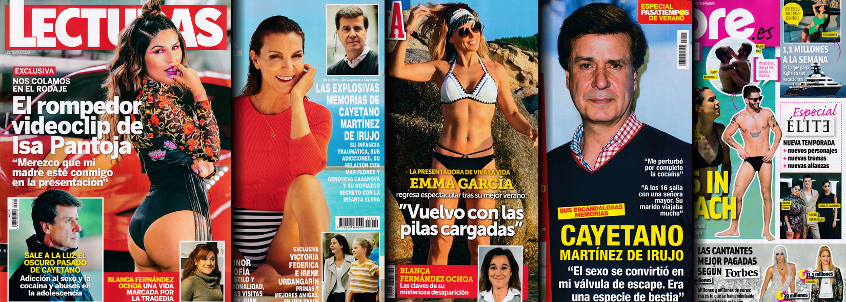 "Cayetano revela el lado oscuro de su vida", leemos en Lecturas. En ¡Hola! definen sus palabras como "explosivas". Semana señala que "Cayetano se sincera como nunca" y Diez Minutos le dedica todo su espacio para destacar su adicción al sexo como "válvula de escape". En páginas interiores, todas resaltan como lo más importante el romance que mantuvo con la infanta Elena.