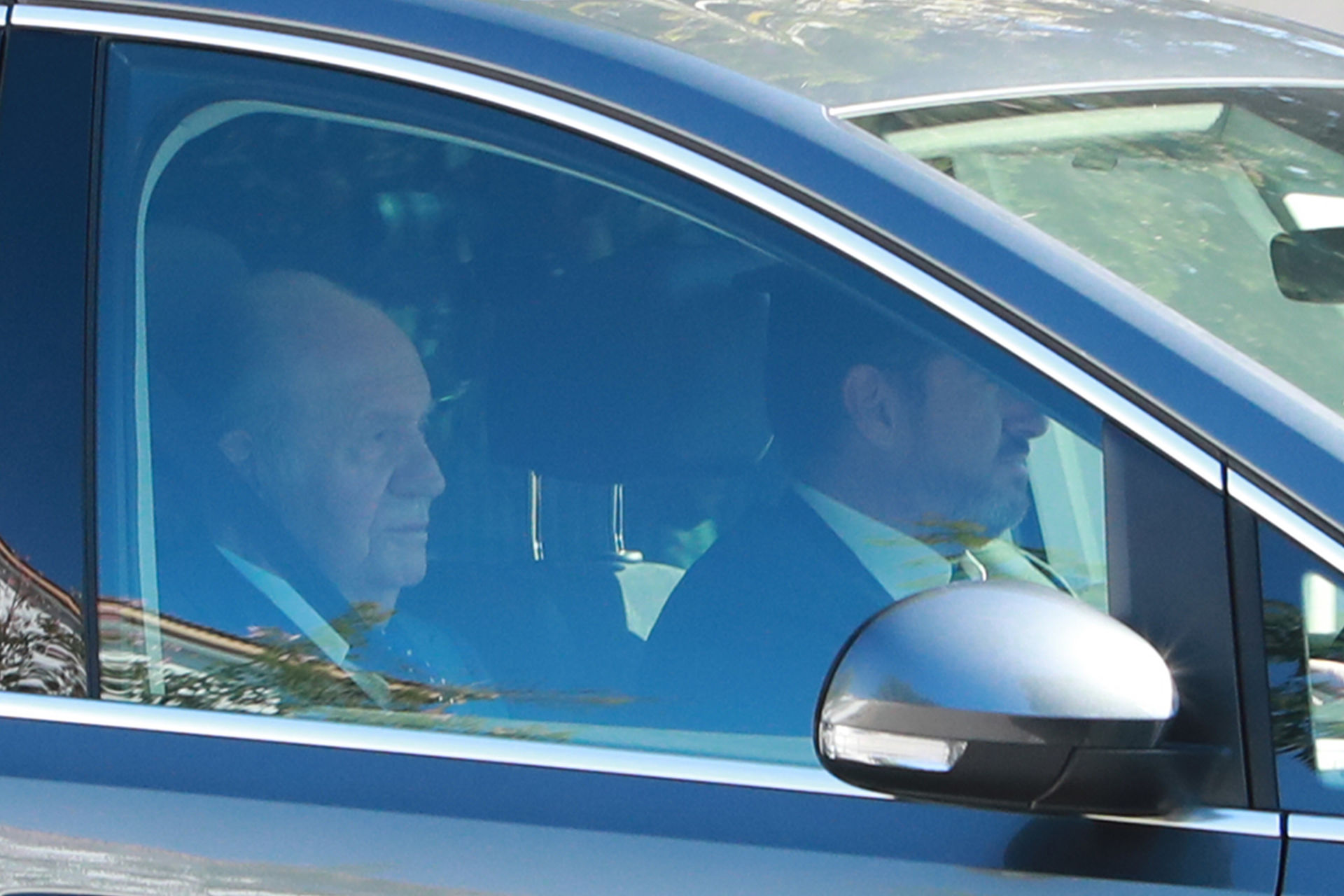 A su llegada, don Juan Carlos saludó desde el vehículo con la mano a los periodistas congregados a las puertas de esta finca a la que solo se puede acceder con permiso, elegida por la pareja de contrayentes para preservar su intimidad.