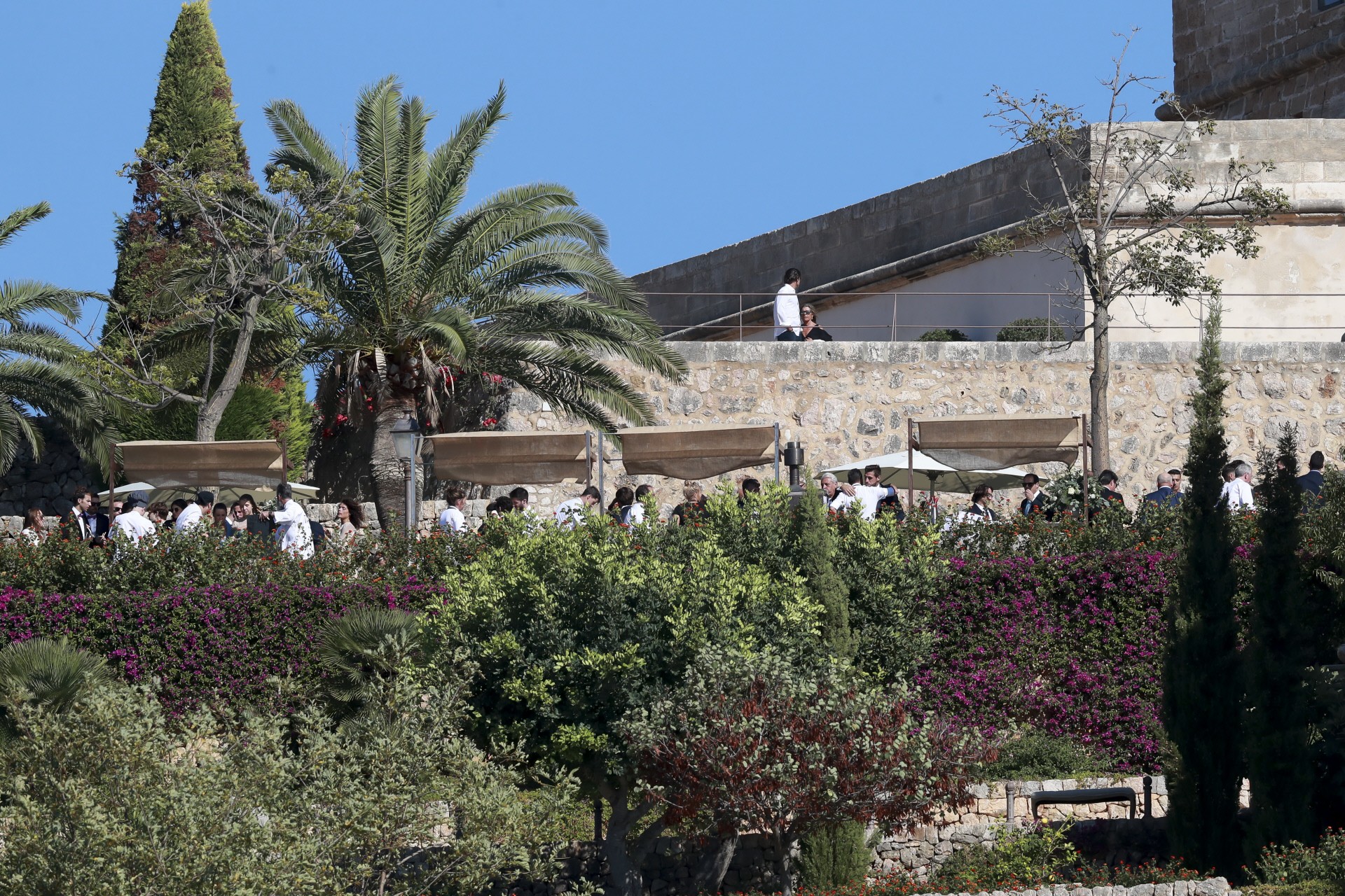 Los invitados miran al exterior de Sa Fortaleza, el complejo casi blindado donde tuvo lugar la boda del tenista Rafa Nadal.