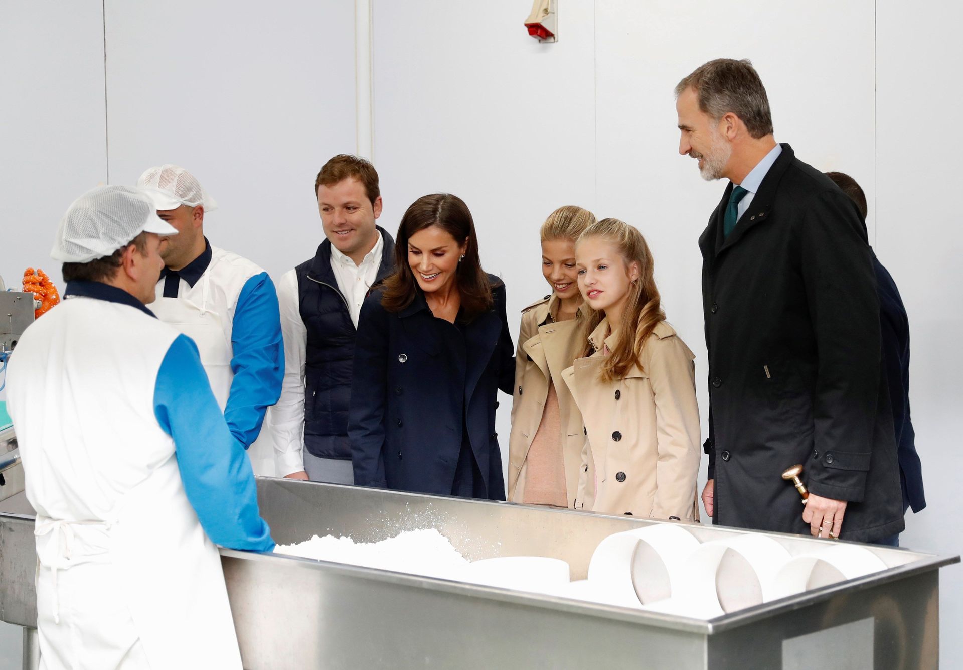 La princesa Leonor acompañada de sus padres Felipe VI, doña Letizia y su hermana la infanta Sofía han visitado una quesería para conocer de primera mano como se realiza el queso de cabrales.