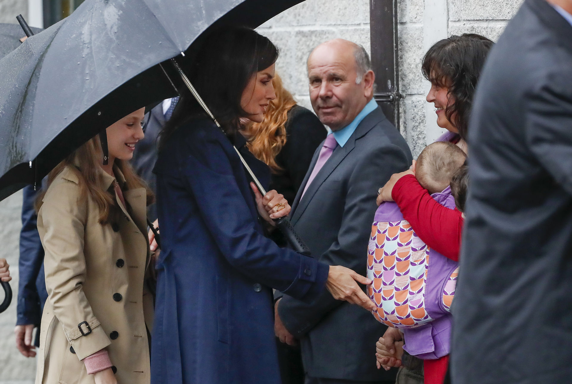La princesa Leonor, los reyes y la infanta Sofía, han comenzado este sábado su visita a la aldea de Asiegu, en los Picos de Europa, galardonada como pueblo ejemplar de Asturias, en medio de una fina lluvia que ha restado colorido al emocionante recibimiento preparado por sus vecinos.