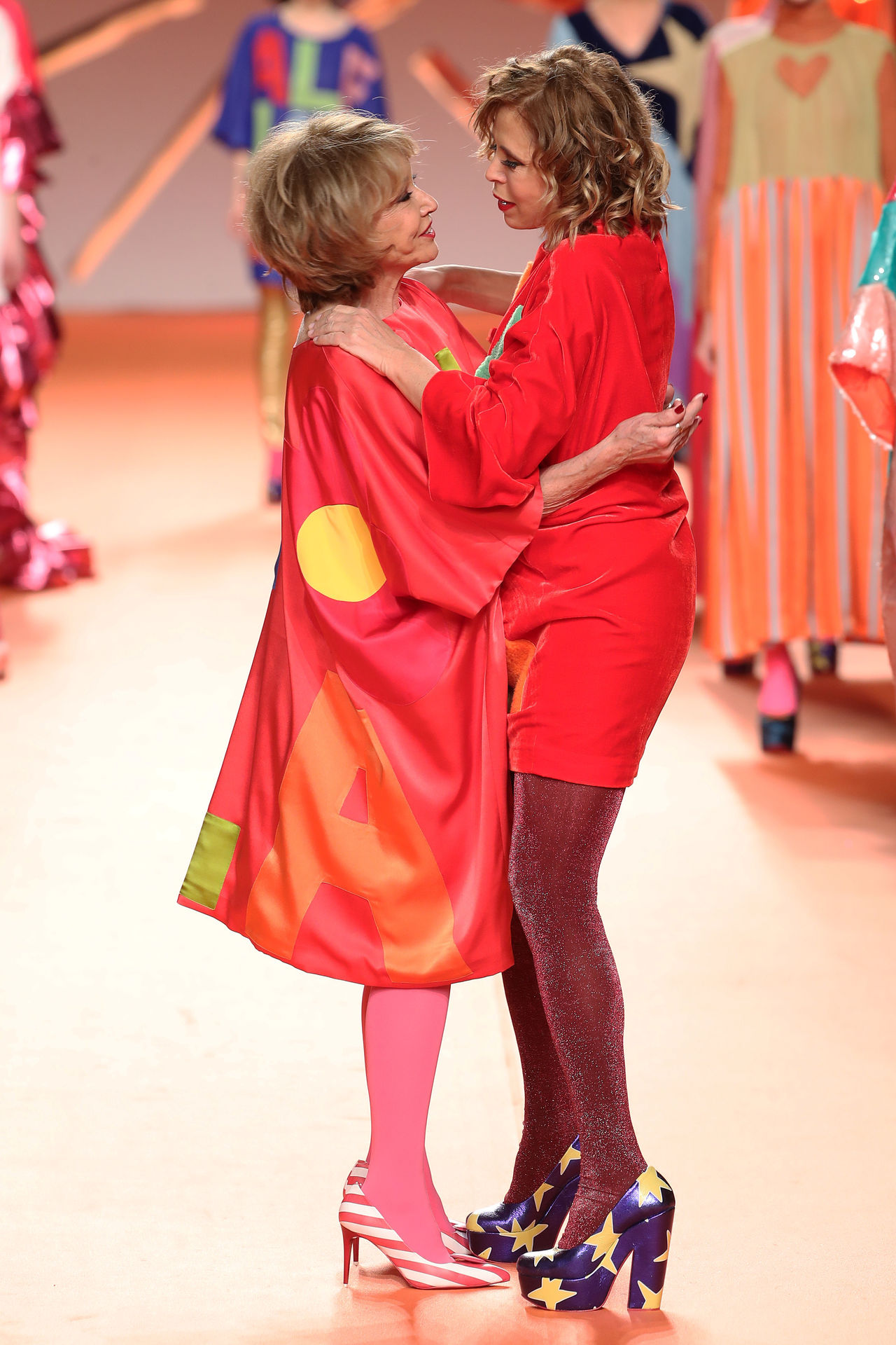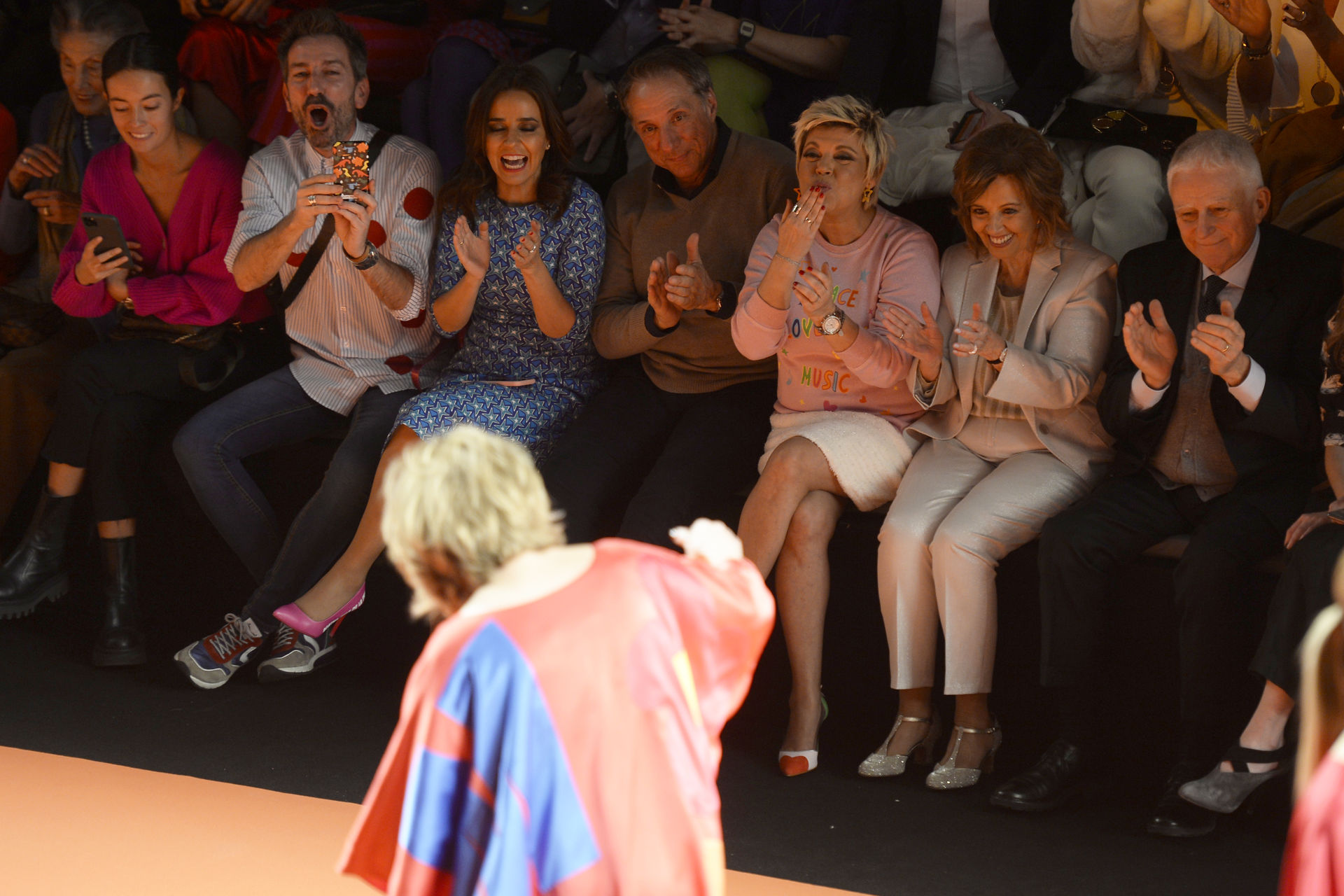 La colaboradora desfilaba franqueada por todas las modelos para luego encontrarse con Ágatha Ruiz de la Prada y con Alejandra Rubio, que también había participado en el desfile.
