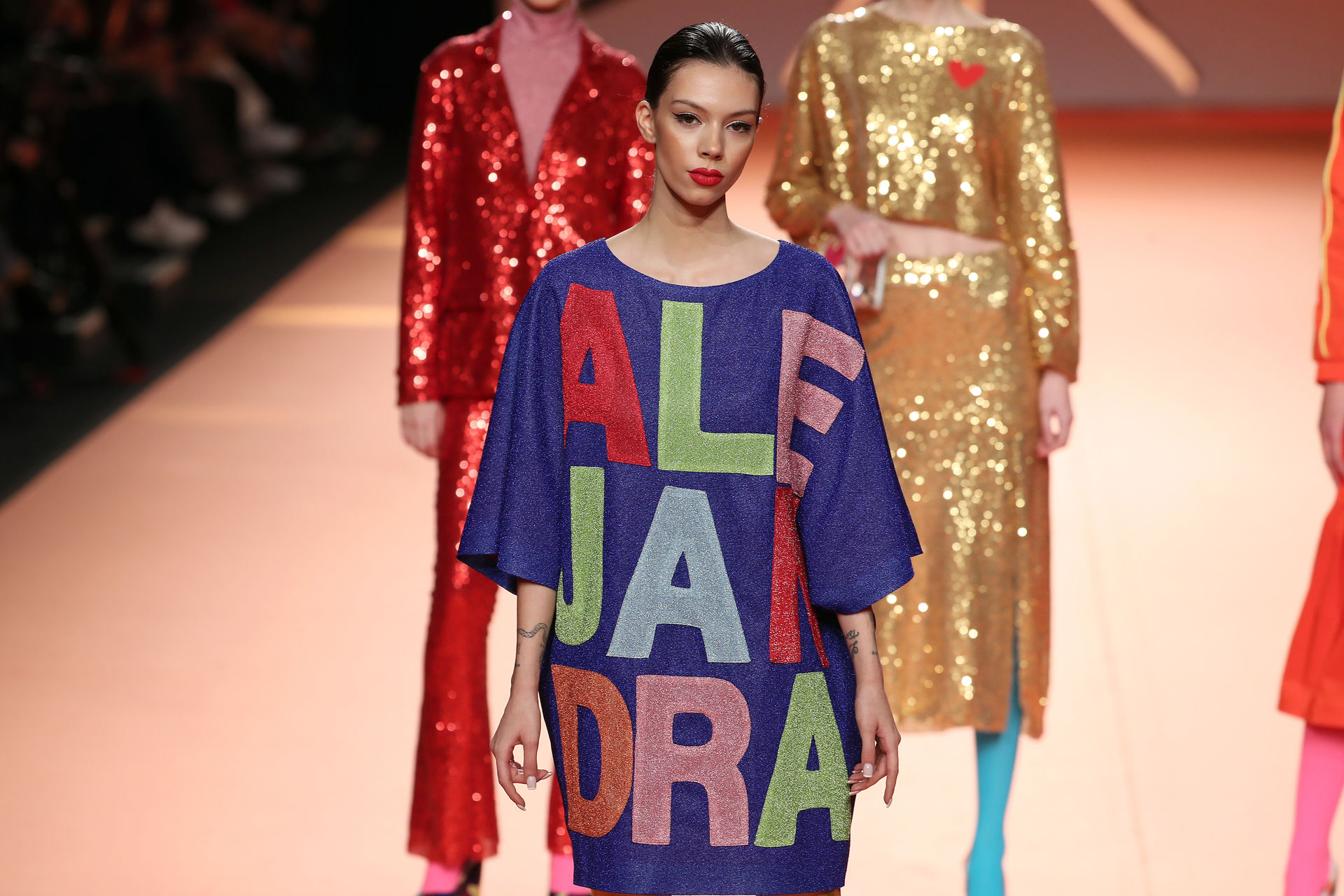 Al igual que Mila Ximénez, Ágatha Ruiz de la Prada diseño un vestido exclusivo para Alejandra en el que se puede leer su nombre con los típicos colores de la diseñadora.