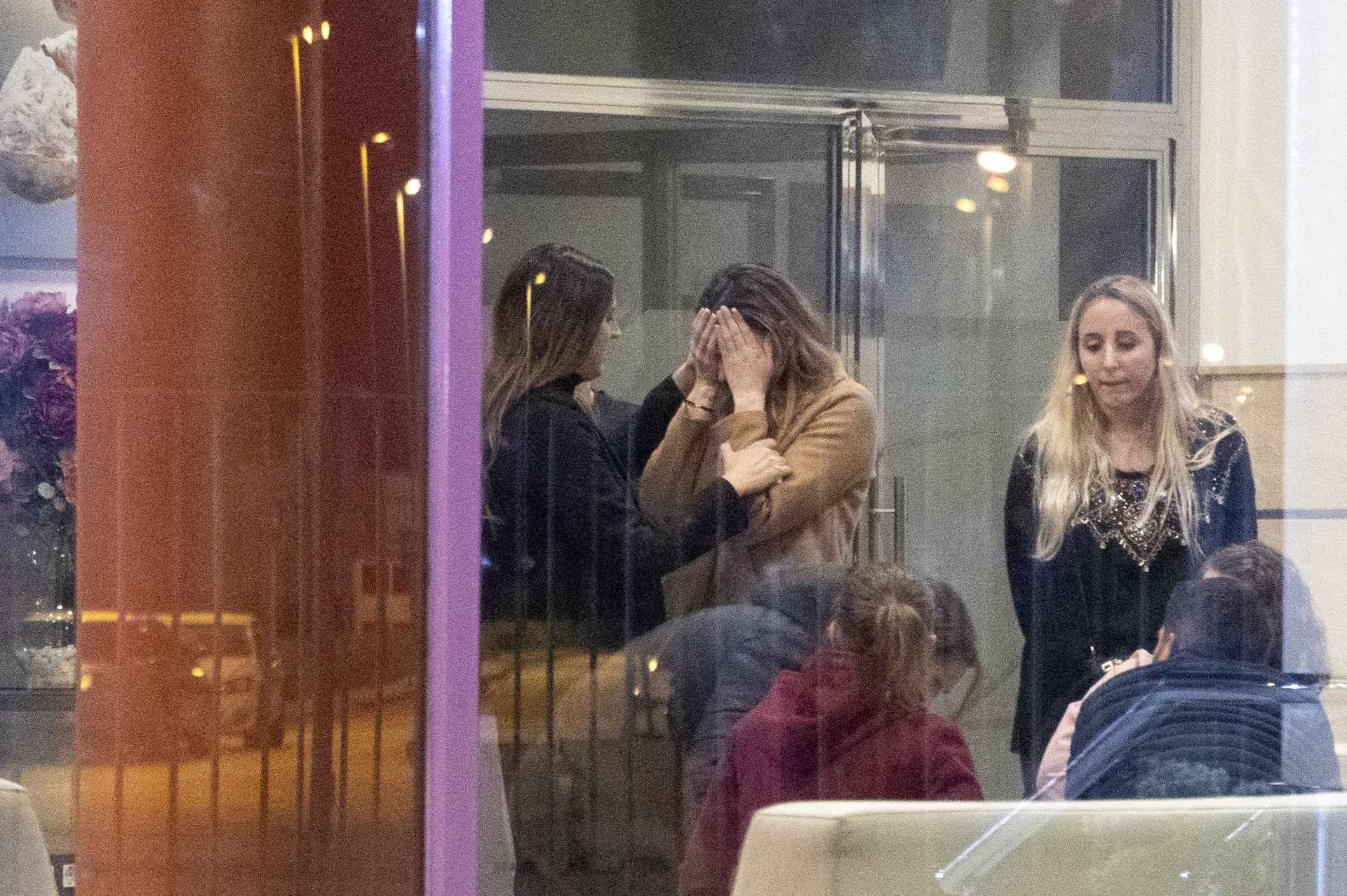 En su llegada al tanatorio se la pudo ver con rostro amargo y con los ojos rojizos por el llanto.