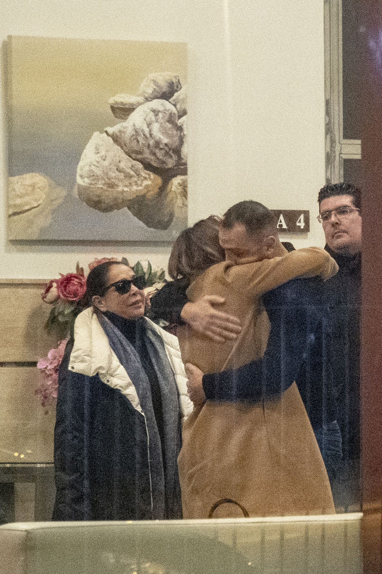 Amigos y familiares que se encontraban dentro del tanatorio recibiero cariñosamente a Irene Rosales y le dieron el pésame.