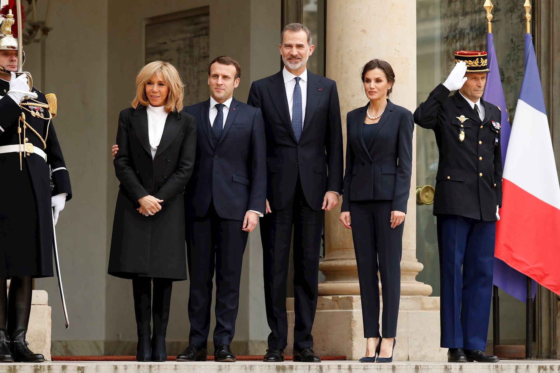 La agenda en París de don Felipe y doña Letizia se abrió con una comida en el Elíseo ofrecida por Macron y su esposa.