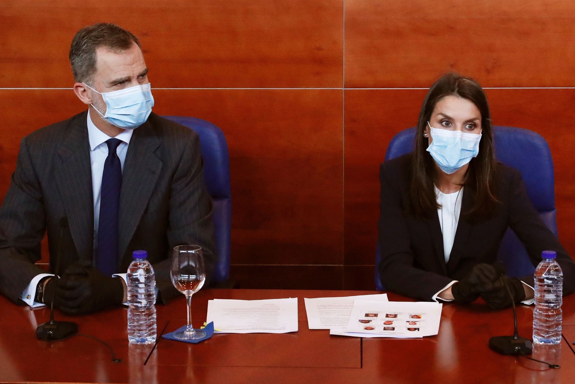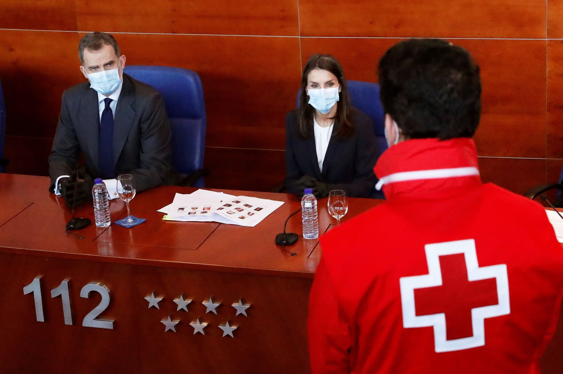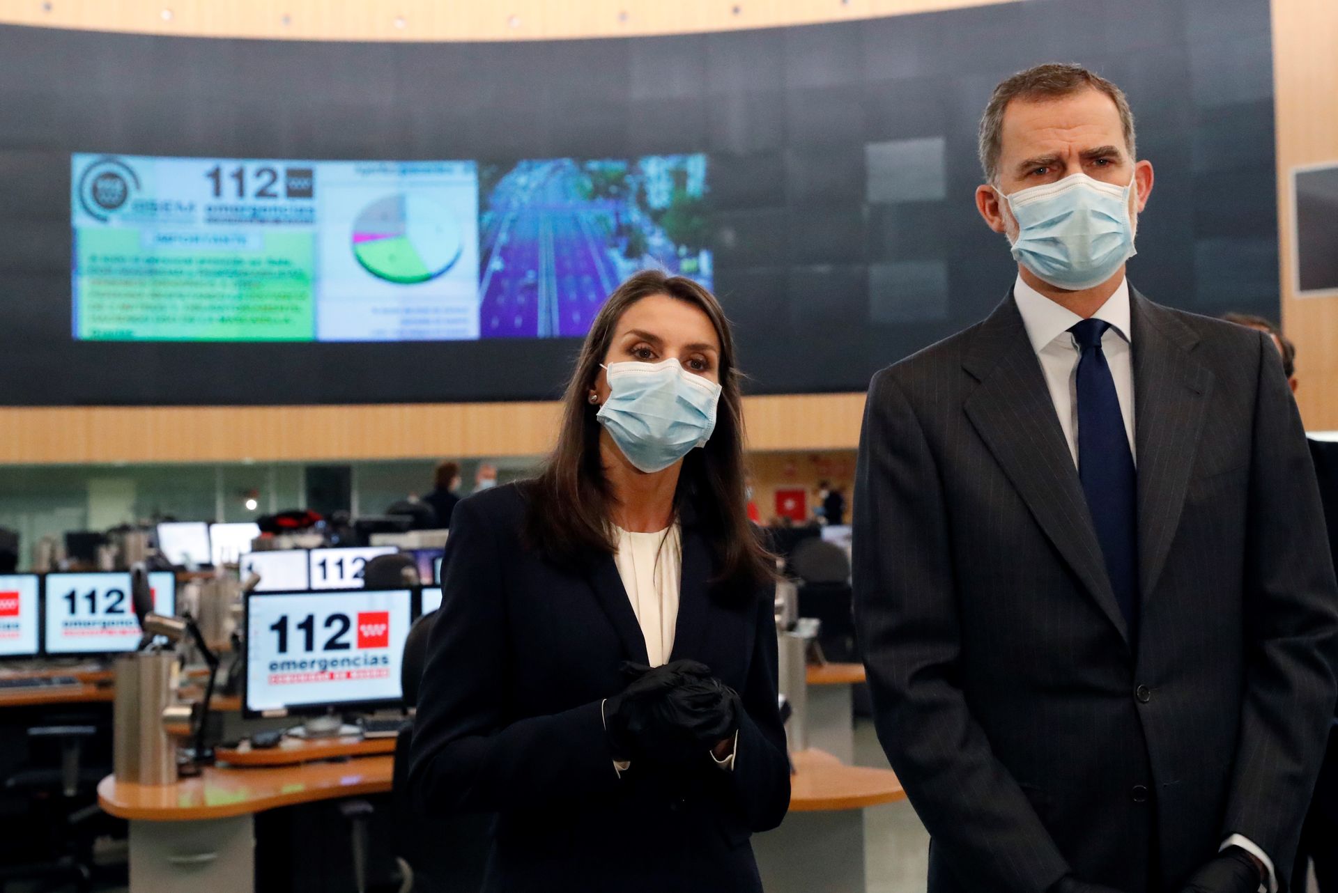 Protegidos con mascarilla y guantes, don Felipe y doña Letizia visitaron la Agencia de Seguridad y Emergencia de Madrid 112 (ASEM 112), ubicada en la localidad madrileña de Pozuelo de Alarcón, acompañados también por el ministro del Interior, Fernando Grande-Marlaska.