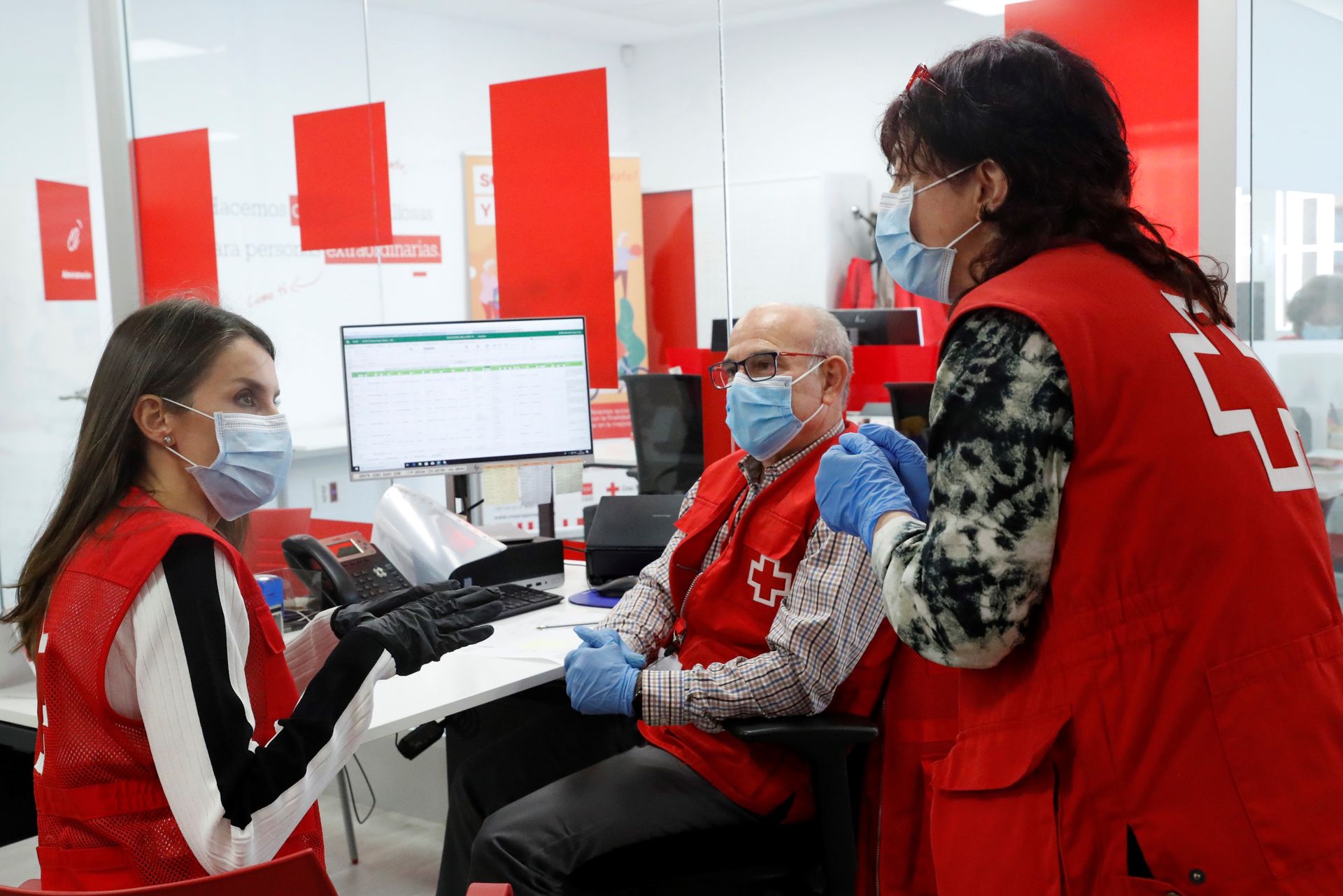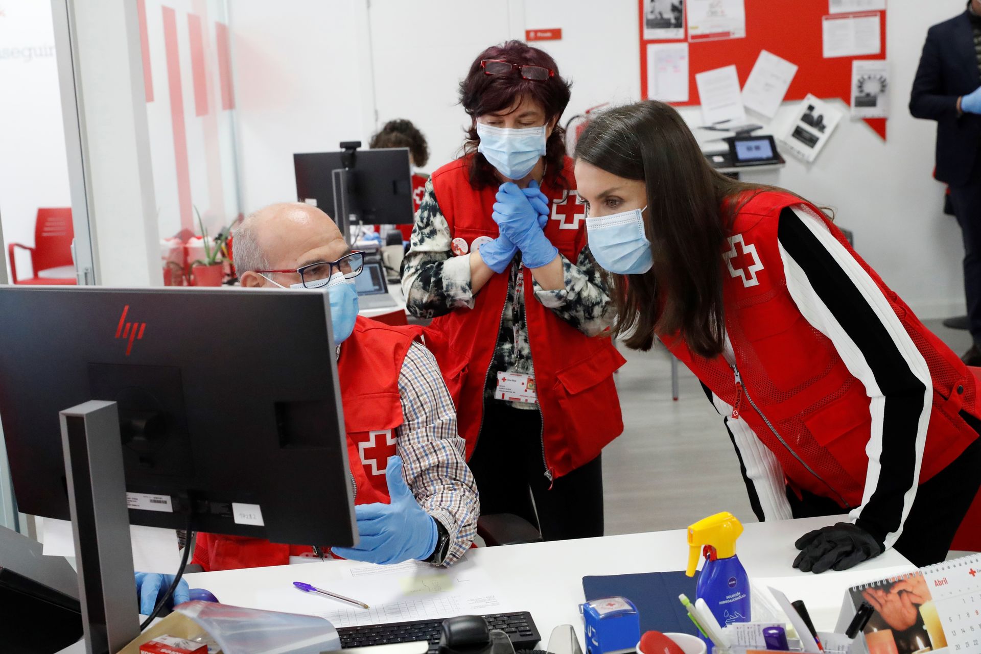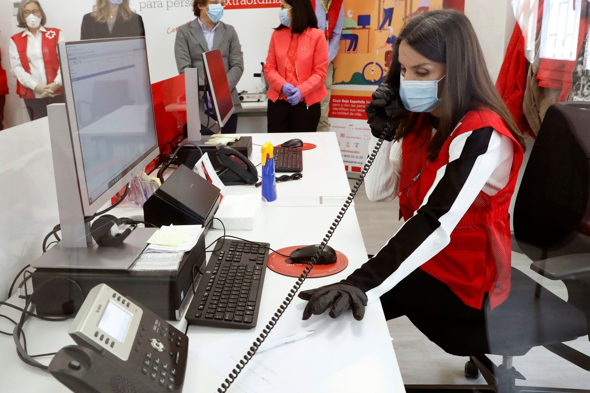 La Reina visito el lunes una de las sedes de Cruz Roja en Madrid para conocer de primera mano la labor que desarrollan esta entidad y sus voluntarios durante la emergencia sanitaria, entre ellas, el apoyo a las personas mayores, con una de las cuales ha hablado para trasladarle su ánimo.