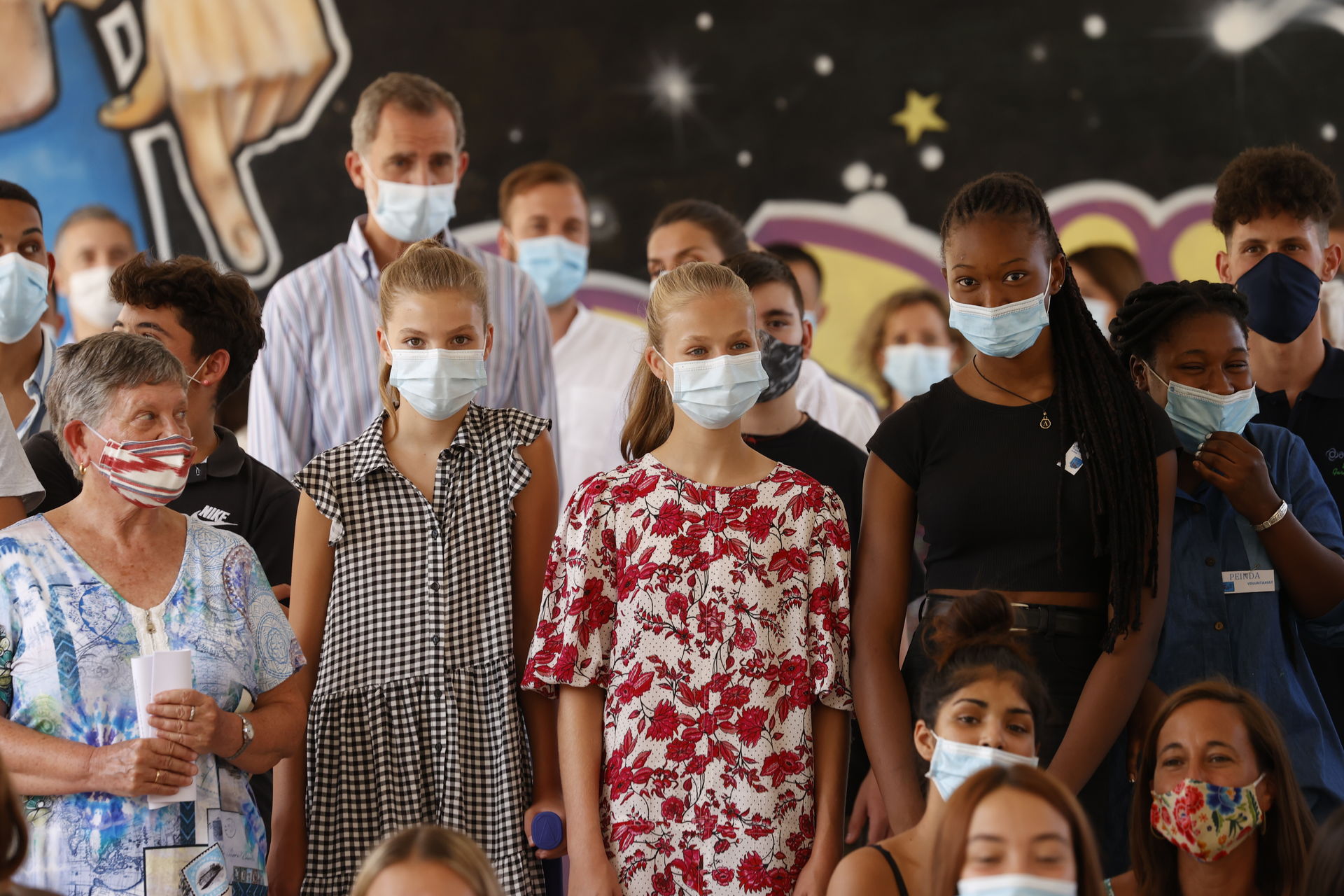 Los reyes y sus hijas han visitado este martes, en su segunda jornada de agenda oficial en Palma, el proyecto educativo Naüm en Son Roca, uno de los barrios más humildes de la ciudad, donde se trabaja para ayudar a jóvenes en riesgo de exclusión social.