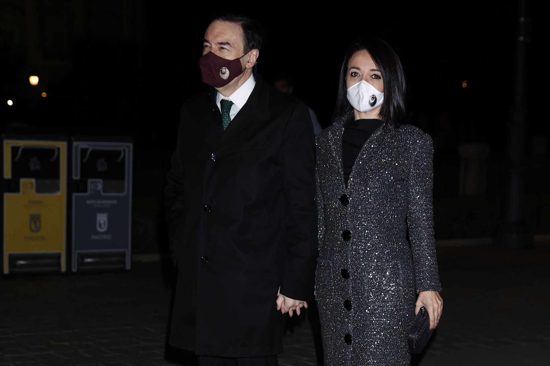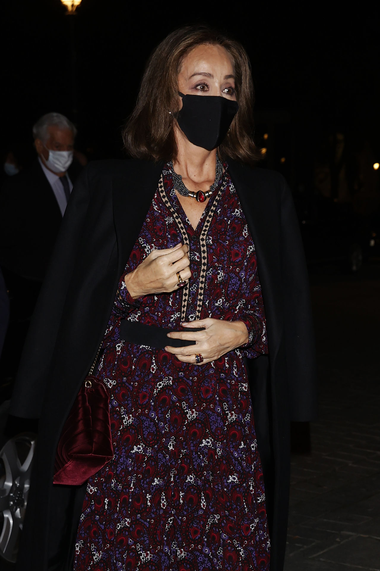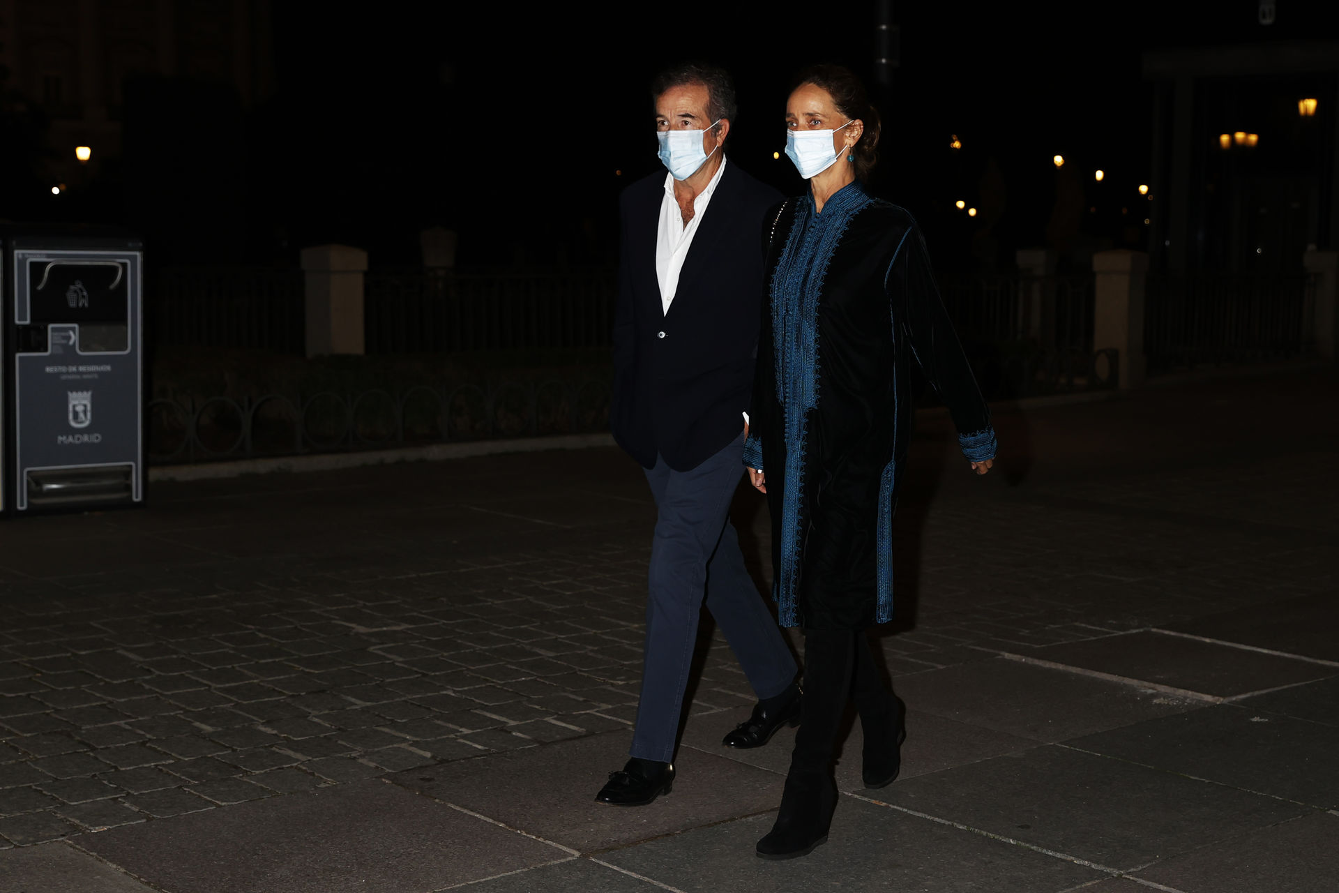 Îsabel Preysler, elegantísima y sin soltar el brazo de su pareja, lució para el esperado estreno operístico, lució un vestido con estampado pasley en tonos burdeos, un cinturón para marcar su estupenda silueta, y, como complementos debido a las bajas temperaturas de la capital, botas altas negras y abrigo sobre los hombros en el mismo color. Ilusionada, Isabel confesó estar muy "contenta" por el hecho de que Tamara se vaya a convertir en la VI Marquesa de Griñón.