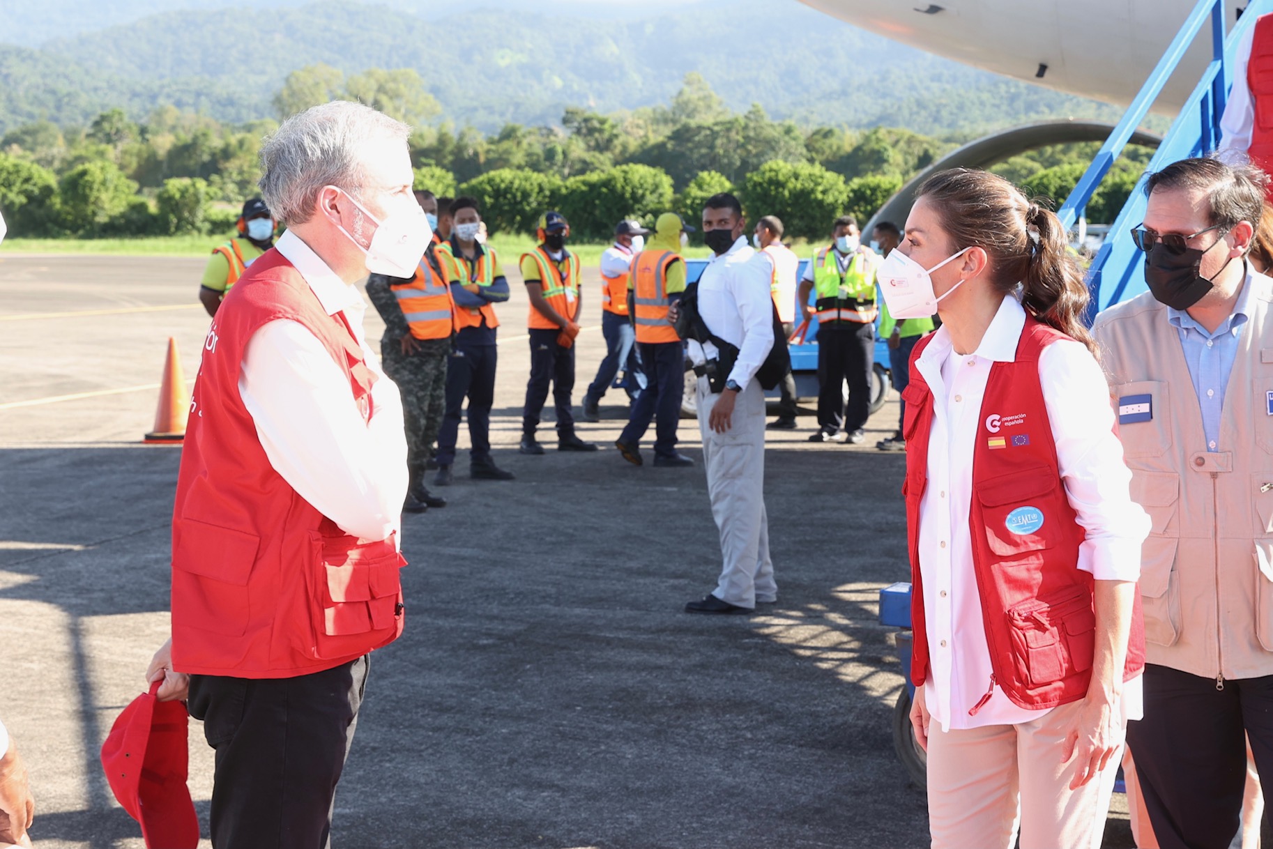 El viaje de la reina y el despliegue de la ayuda tienen como objetivo trasladar el apoyo y la solidaridad de España ante la crítica situación económica y social en la que está inmerso el país por los destrozos generados por los dos huracanes y por el impacto de la pandemia.
