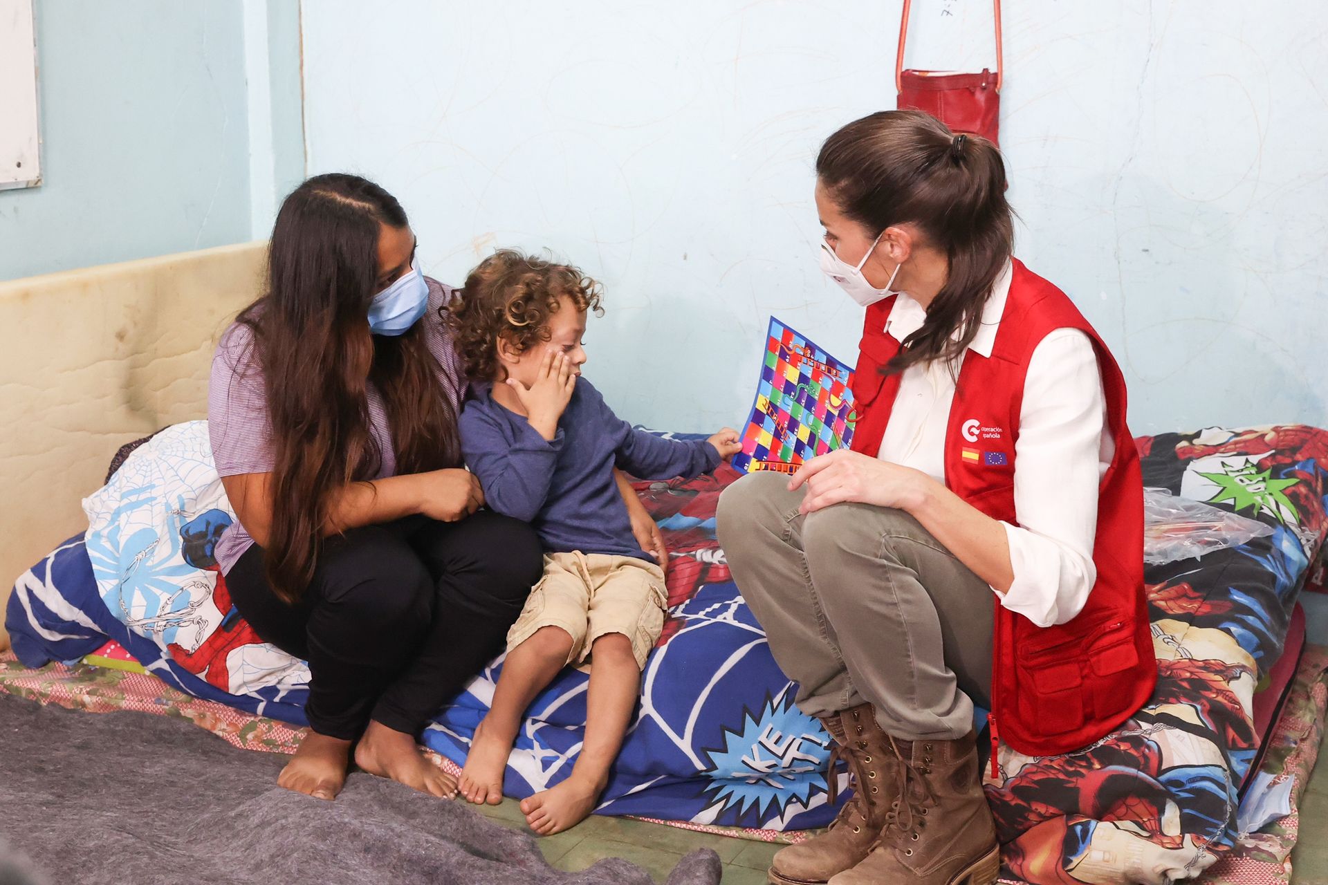 La reina, acompañada por la secretaria de Estado de Cooperación Internacional española, Ángeles Moreno, comenzó la jornada con una reunión con representantes de ONGs, que le describieron el drama que vive la población.