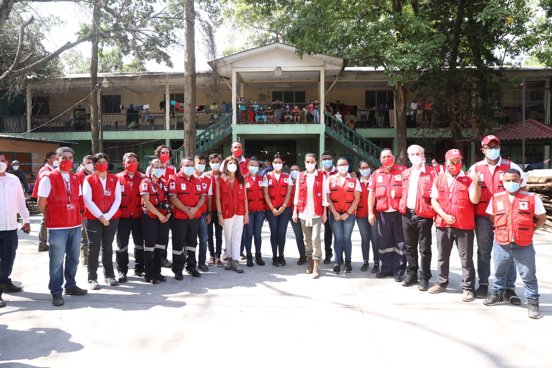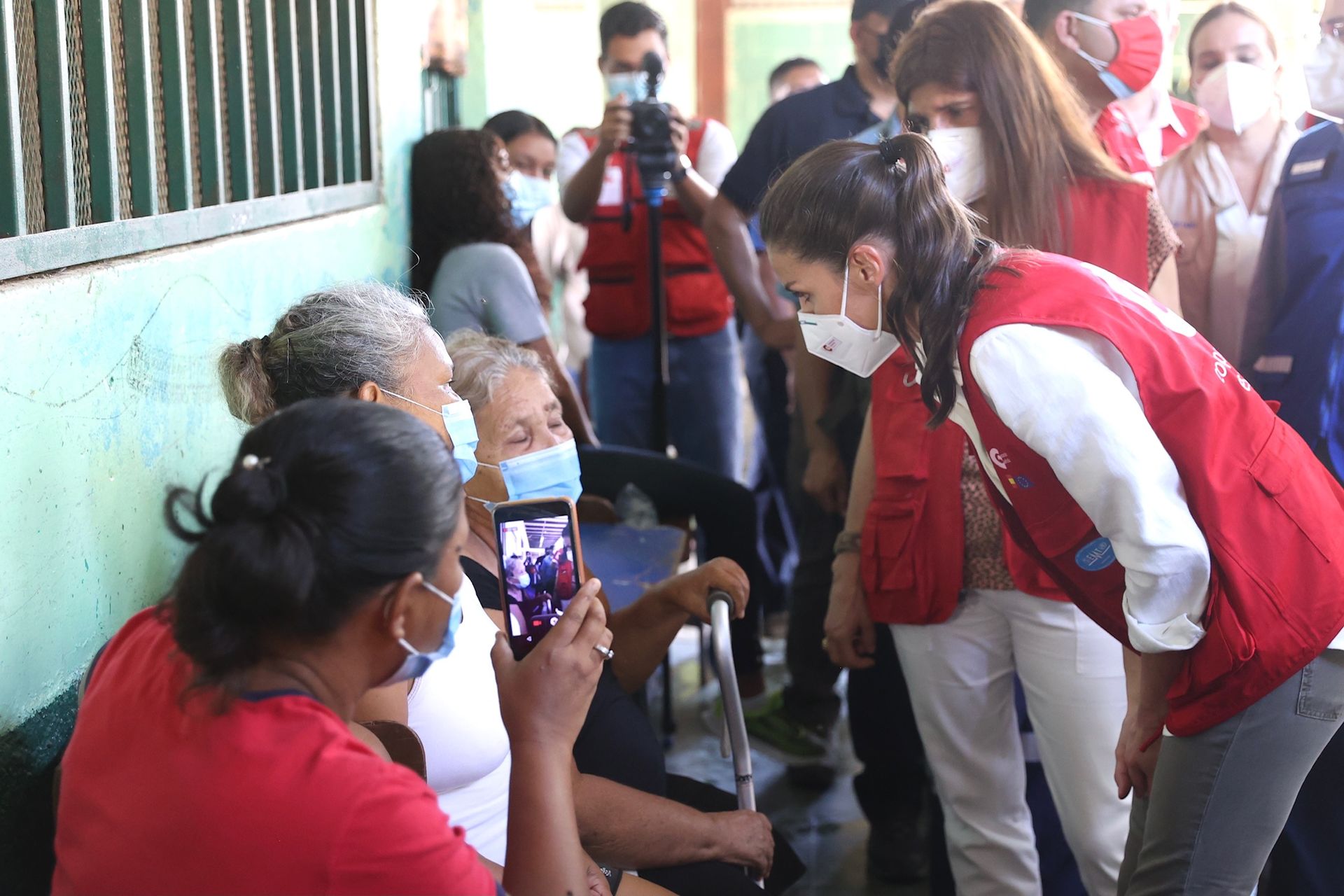 Del colegio, la comitiva se trasladó al Instituto Patria, también en La Lima, cuyas aulas se han reconvertido en albergue para cerca de 150 familias que esta semana recibieron colchones para dejar de dormir en el suelo.
