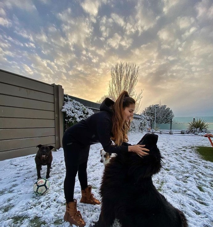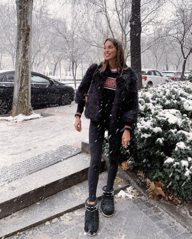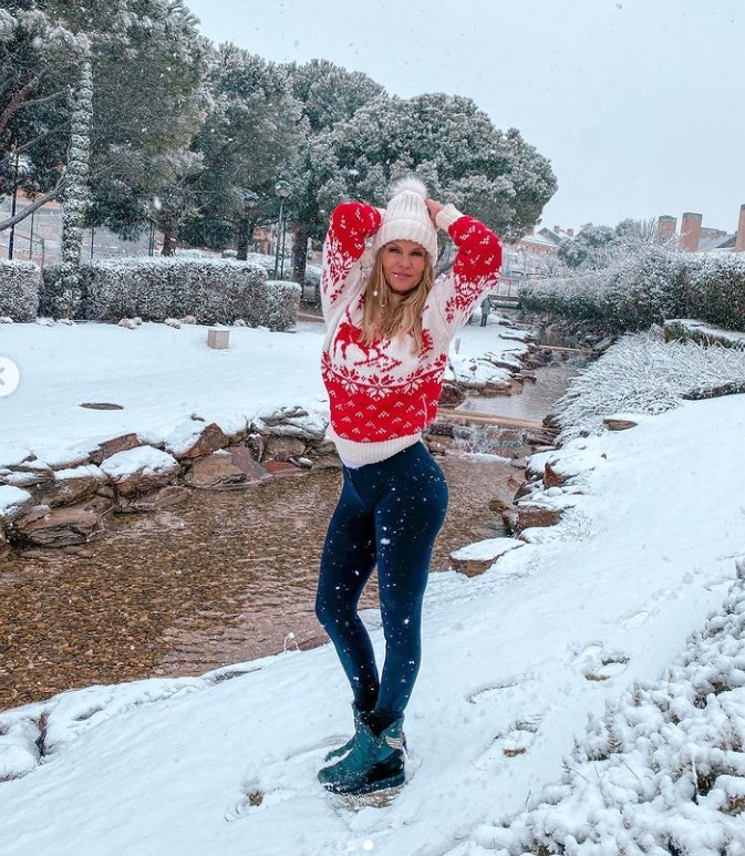 La novia de Kiko Matamoros ha compartido una serie de fotografías disfrutando de la nevada en Madrid.