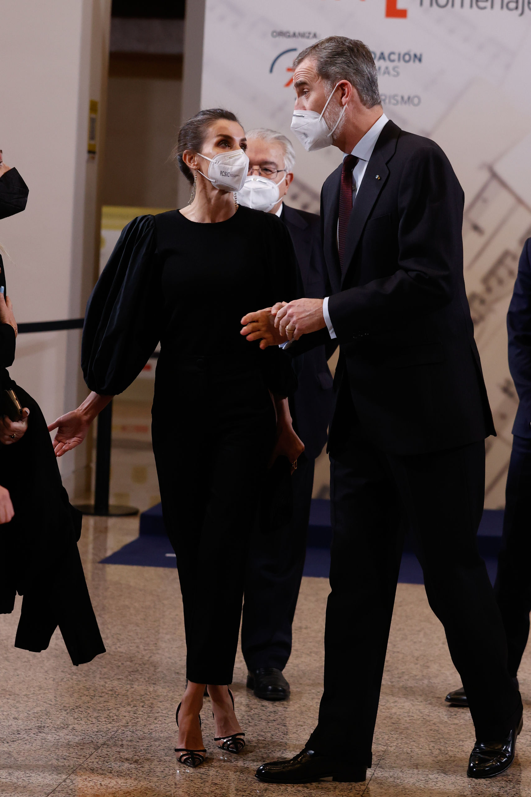 Los Reyes llegaban juntos, muy puntuales, con unos looks de lo más elegantes y siguiendo con el luto riguroso. En esta ocasión, Doña Letizia ha optado por un conjunto de pantalón largo y Don Felipe VI, como no podía ser de otra manera con un traje negro con corbata, eso sí, granate para darle un toque más sofisticado.