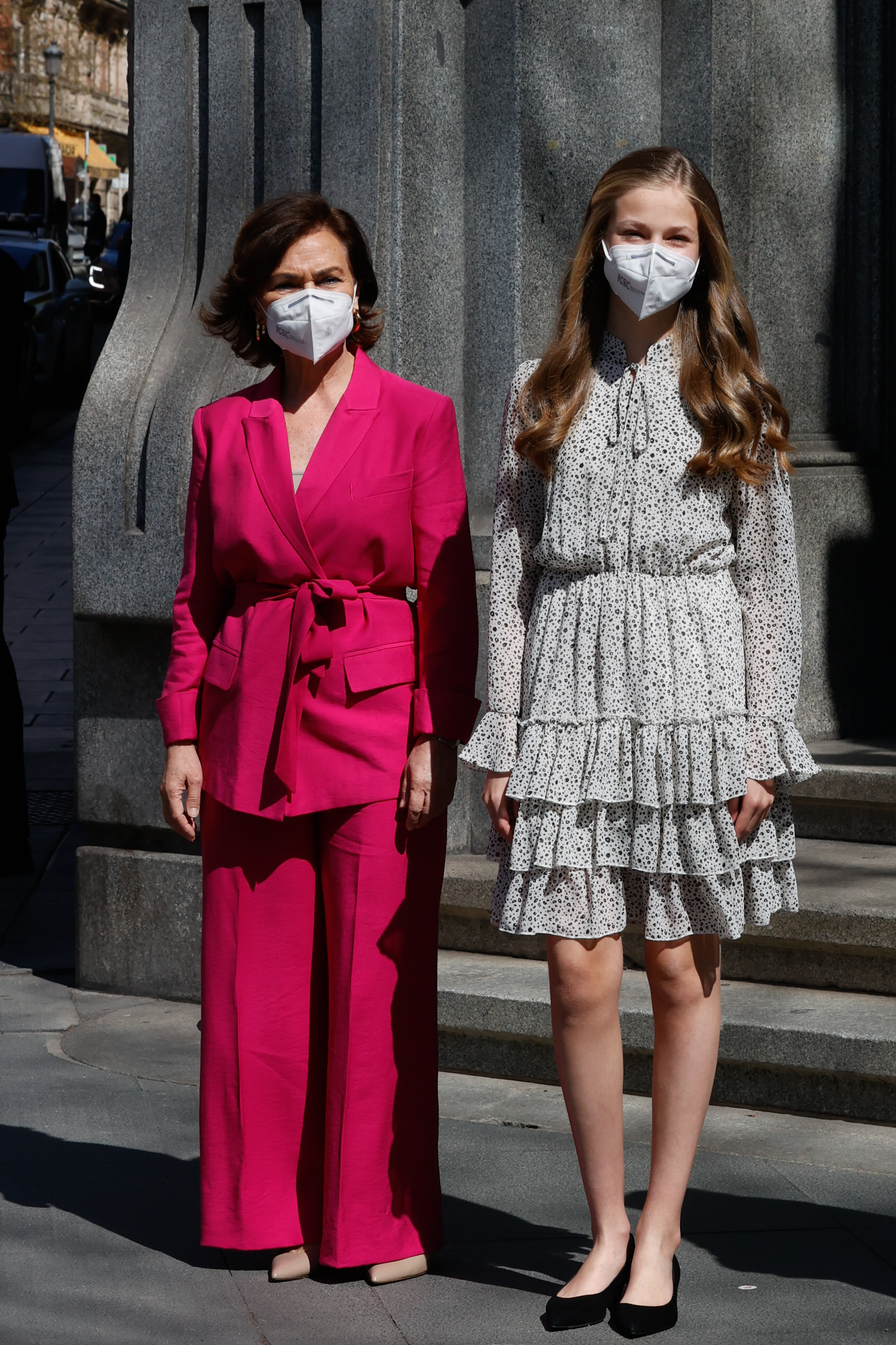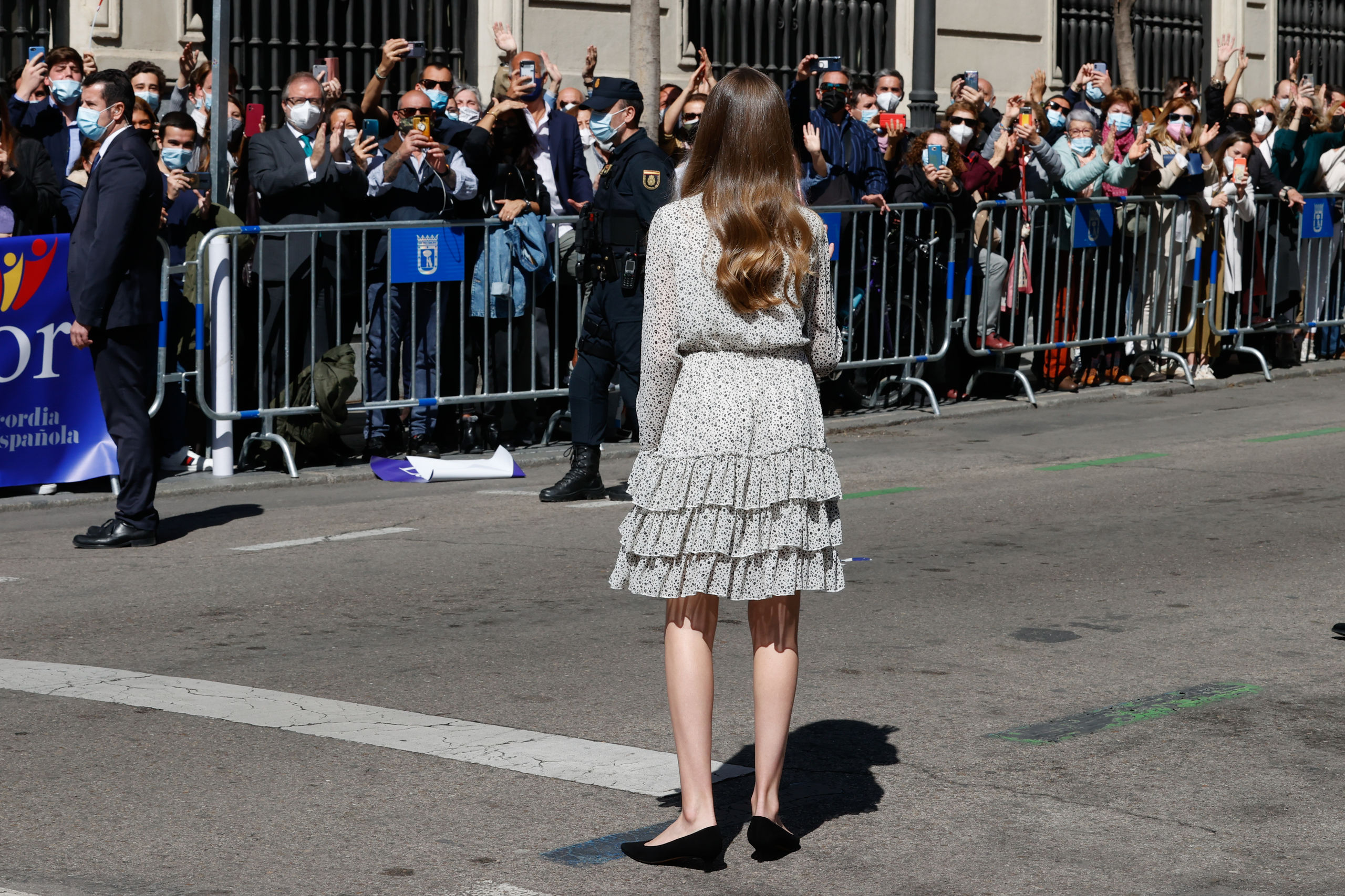 En su debut en solitario, Leonor visitó un vestido floral de la firma Poéte que estrenó en las audiencias previas a la entrega de los Premios Princesa de Asturias, en octubre de 2020. Pocos días después de que lo estrenara, el diseño se agotó.