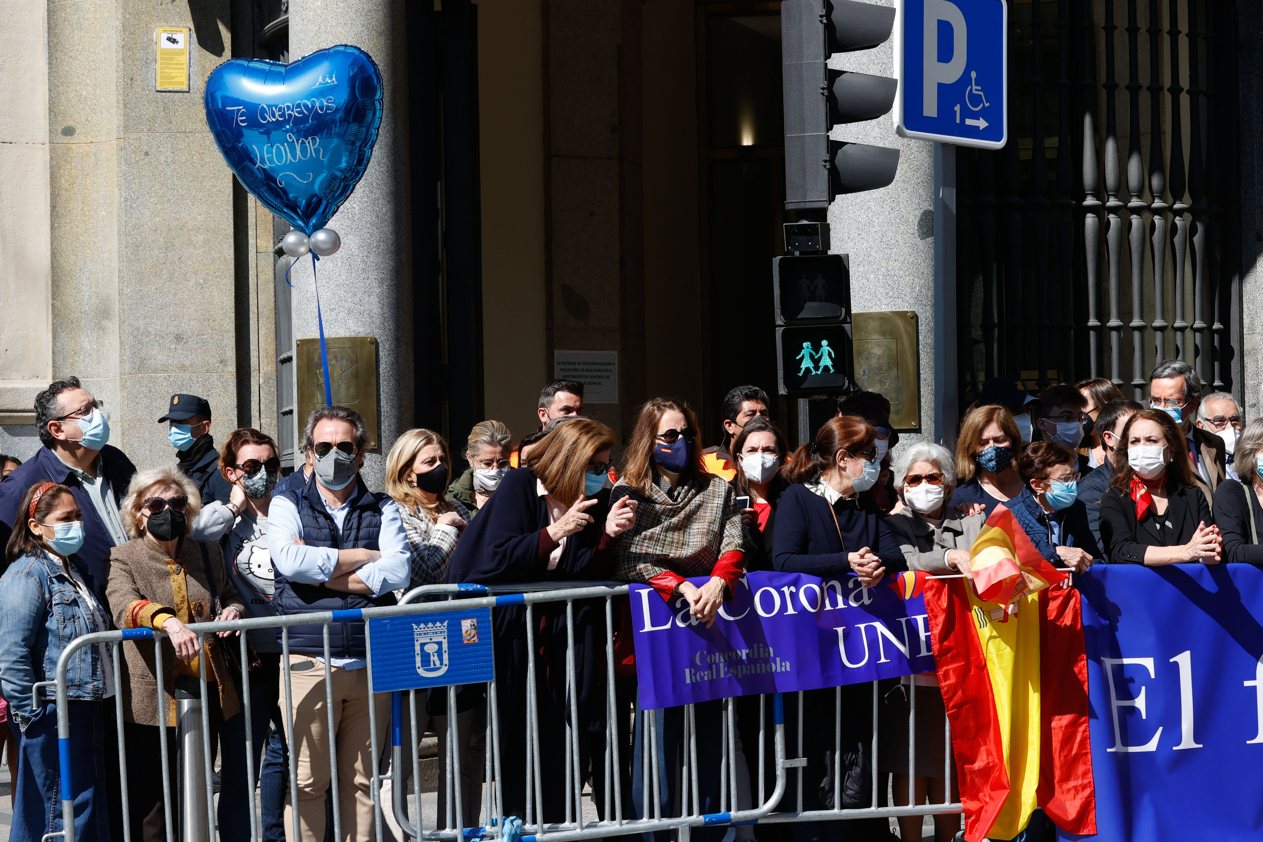 A su llegada al Instituto Cervantes y tras saludar a la vicepresidenta primera y a García Montero, Leonor rompió durante unos segundos el protocolo para acercarse a saludar y dar las gracias a las personas que se acercaron a darle su apoyo.