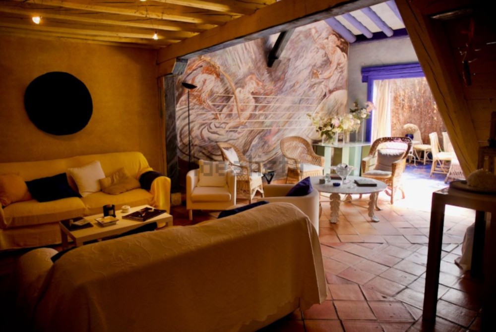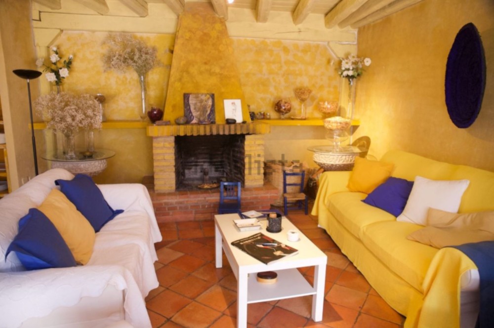 La casa de la madre del Miguel Bosé se distribuye en un amplio y luminoso salón con un fresco del reconocido artista italiano Emilio Farina, con chimenea y acceso directo al patio cubierto.