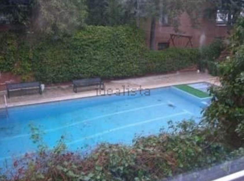La urbanización donde se encuentra la casa tiene una gran piscina.