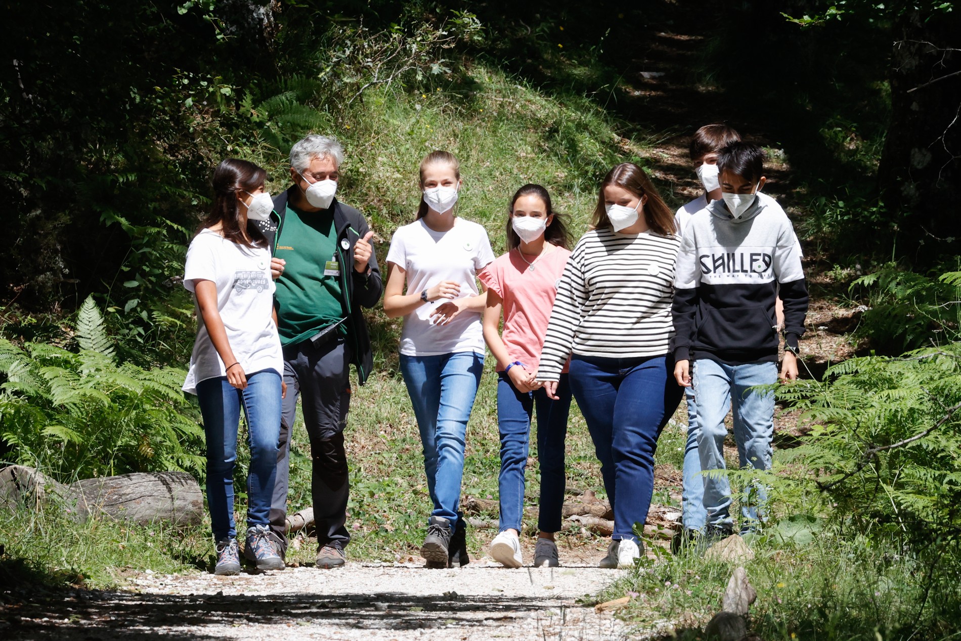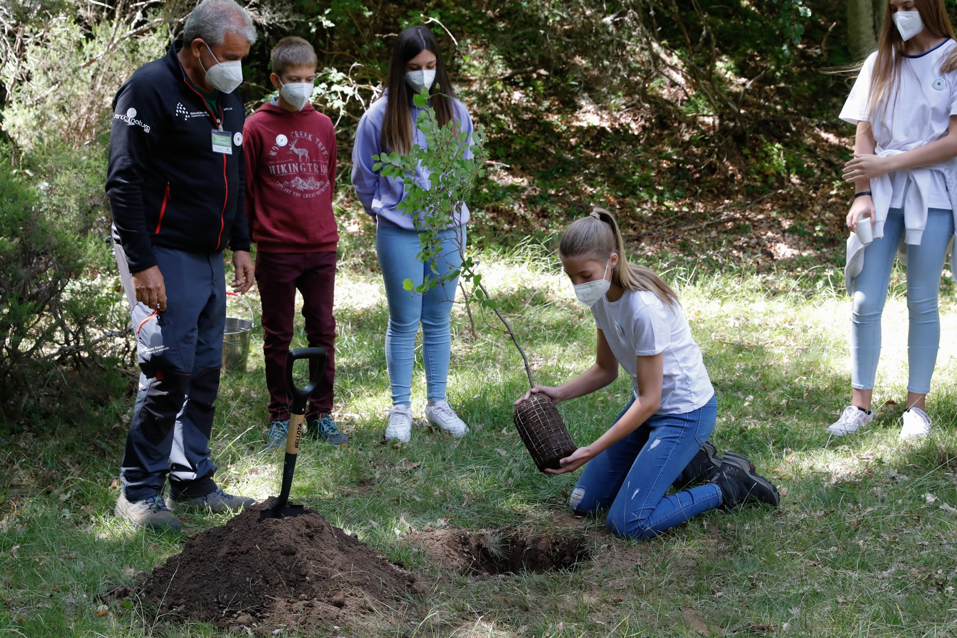 En vaqueros y camiseta, con buenos zapatos de campo, la heredera al trono, de 15 años, y su hermana, de 14, se han unido a una treintena de chicos y chicas de su edad para recorrer parte del Hayedo de Montejo y plantar media docena de árboles con motivo del Día Mundial del Medio Ambiente. El hayedo, situado en la localidad madrileña de Montejo de la Sierra, a unos 90 kilómetros de la capital, está catalogado como Patrimonio Cultural de la Humanidad desde 2017 y forma parte de la Reserva de la biosfera Sierra del Rincón.